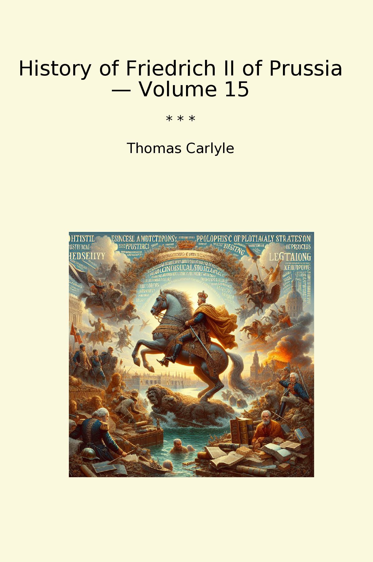 History of Friedrich II of Prussia — Volume 15 by Thomas Carlyle is a continuation of the sweeping narrative chronicling the life and reign of Frederick the Great, King of Prussia. In this volume, Carlyle delves into the intricate political landscape and the personal trials faced by Frederick during a tumultuous period in European history. Blending rigorous historical fact with poetic prose, Carlyle captures the complexities of Frederick's character—his military acumen, philosophical inclinations, and the heavy burdens of leadership.Carlyle's work not only highlights pivotal battles and diplomatic maneuvers but also reflects on the broader implications of power, governance, and the human spirit. Known for his passionate style and deep insights, Carlyle immerses readers in the era, encouraging them to ponder the intersection of history and personal narrative. Volume 15 serves as a compelling testament to the legacy of a monarch who shaped Prussia’s destiny and left an indelible mark on history.