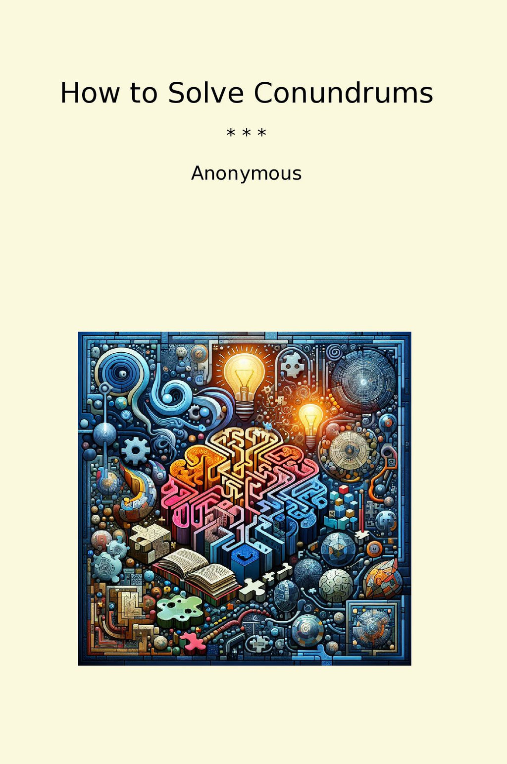 "How to Solve Conundrums" is a timeless classic that offers readers a delightful challenge as they unravel perplexing puzzles and riddles. Written by an anonymous author, this book is filled with brain-teasing conundrums that will put your problem-solving skills to the test. From logic puzzles to word games, this collection has something to perplex and entertain readers of all ages.
