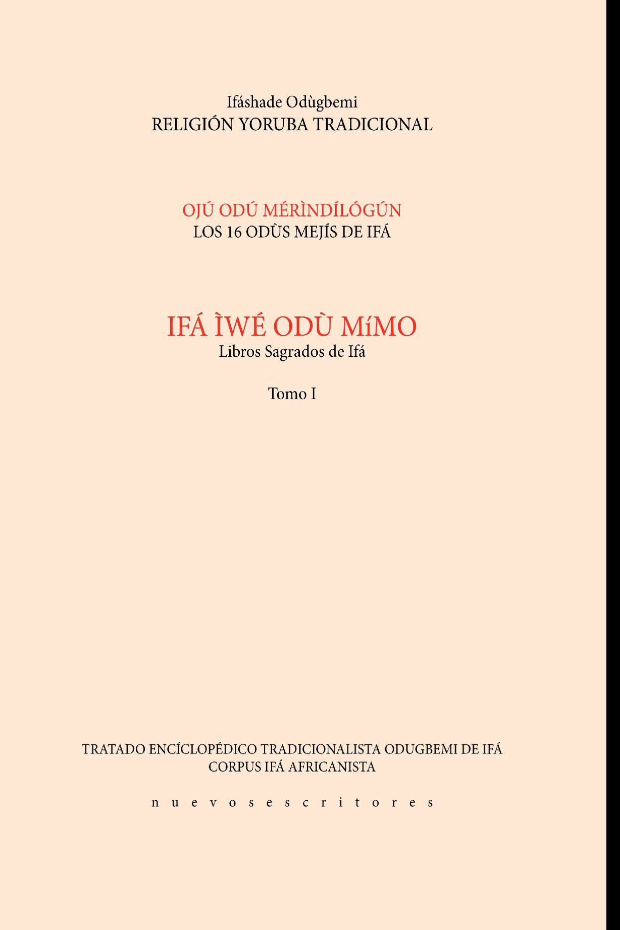 Este libro y los restantes cinco tomos de la Enciclopedia Tradicionalista de Ifá a la cual pertence, han sido concebidos principalmente para babalawos, iyaonifás (Padres y Madres de los Secretos) e iniciados en Ifá Tradicionalista-Africanista, aunque-por supuesto-, no excluye a los devotos y seguidores de otras líneas afro-americanas, así como a lectores noveles en la materia relativa a Las Tradiciones Religiosas Yorubas, a los cuales-por desconocimiento de las bases elementales de esta tradicíon- ; talvez se les dificulte la adecuada comprensión de muchos de sus contenidos porque no es un texto elemental de ifá.