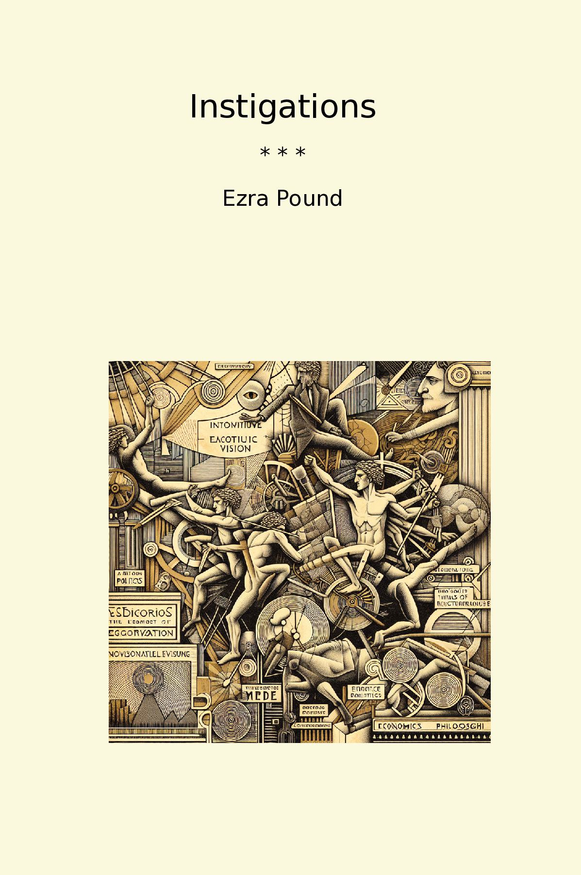 'Instigations,' written by Ezra Pound, is a seminal work that encapsulates the poet's multifaceted thoughts on art, culture, and politics. Published in 1916, this collection is not merely a series of essays but a passionate manifesto advocating for a new aesthetic vision. Pound's sharp intellect and poetic sensibility shine through in his analysis of contemporary literature and the historical context surrounding it. He explores the role of the artist as a revolutionary figure, challenging the status quo and promoting innovation.Through intricate language and vivid imagery, Pound critiques the complacency of traditional forms and calls for a reinvigoration of artistic expression. He integrates his profound knowledge of multiple disciplines, including economics and philosophy, which adds depth to his arguments. Overall, 'Instigations' serves as both a guide for aspiring artists and a provocative commentary on the cultural landscape of his time, solidifying Pound's role as a critical voice in modernist literature.
