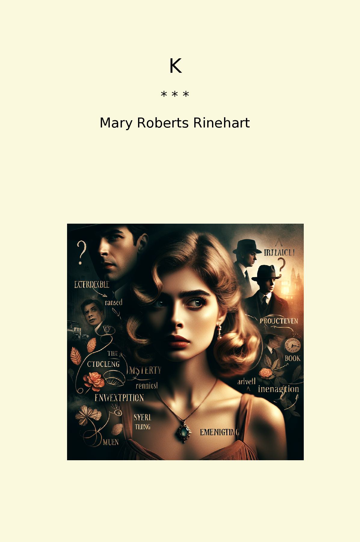 K by Mary Roberts Rinehart is a captivating mystery novel that intertwines romance and suspense in an intriguing narrative. The story revolves around a young woman named Kitty, who, while navigating the complexities of her emotions and her relationships, becomes embroiled in a thrilling investigation. Set against a backdrop of early 20th-century society, Rinehart expertly crafts a plot filled with unexpected twists and turns that keep readers on the edge of their seats. The character development is rich, with Kitty emerging as a relatable and strong protagonist, grappling with her feelings for the enigmatic man known only as K. Rinehart's vivid descriptions and keen insight into human nature enhance the storytelling, making the reader invested in Kitty's journey. With a blend of clever dialogue and atmospheric tension, K showcases Rinehart’s prowess as a master of mystery and suspense, making it a timeless read for fans of the genre.