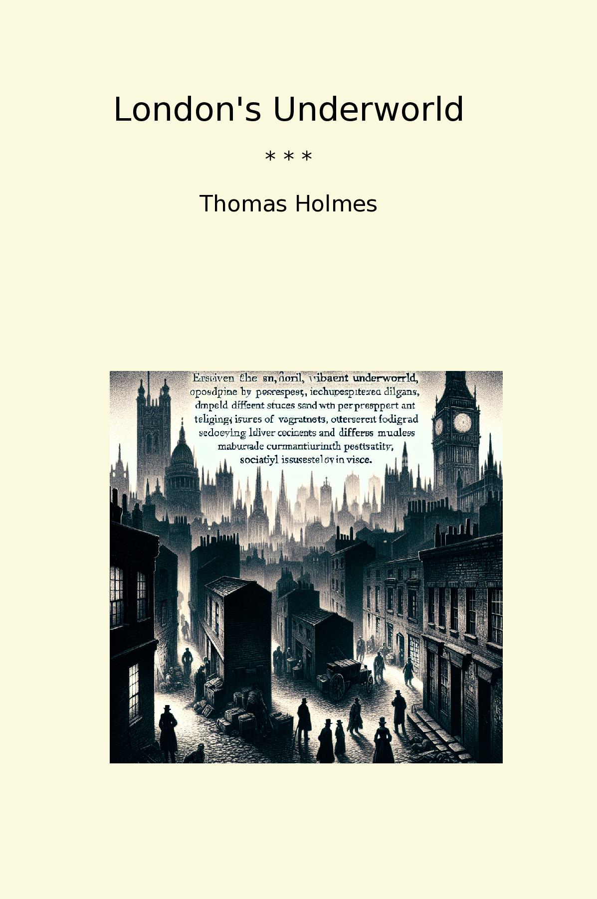 London's Underworld by Thomas Holmes is a riveting exploration of the darker side of Victorian London. Released in the late 19th century, it delves into the lives of the city's marginalized populations, including beggars, thieves, and the infamous criminal underclasses. Holmes provides a vivid, unflinching portrayal of the squalor, desperation, and resilience that characterized the streets beneath the surface of societal respectability.Through meticulous research and firsthand accounts, the author illuminates the grim realities of life in the alleys and backstreets, painting a picture of a city teeming with vice, yet pulsating with stories of survival. The book is not just a chronicle of crime but also a poignant commentary on social issues of the time, capturing the intersection of poverty and humanity.London's Underworld remains a significant historical work, offering readers insight into the complexities of urban life, making it a must-read for anyone interested in social history or Victorian literature.