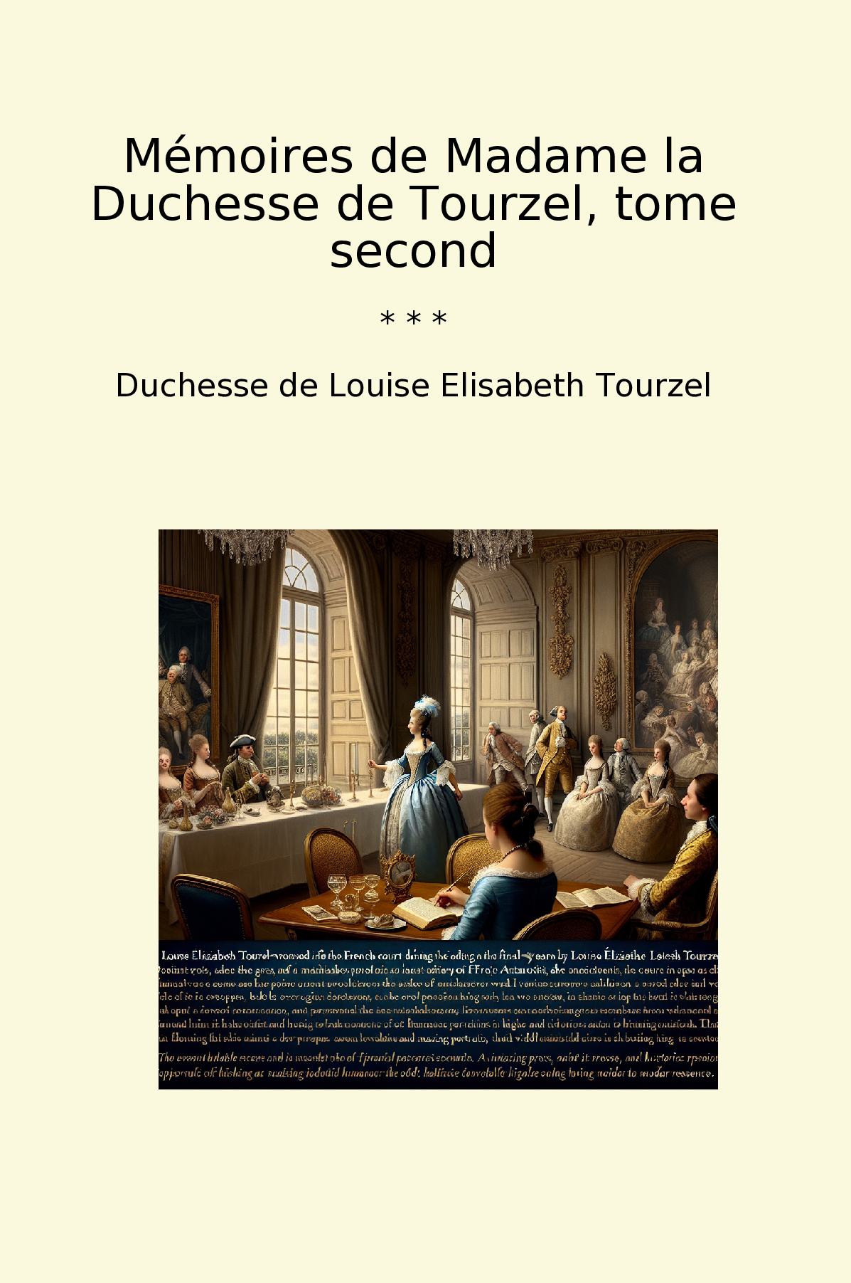 Mémoires de Madame la Duchesse de Tourzel, tome second est un ouvrage fascinant qui offre un aperçu précieux de la vie à la cour de France à l’époque de la Révolution. Écrite par Louise Élisabeth de Tourzel, cette mémoires se distingue par son regard unique et personnel sur les événements tumultueux qui ont marqué le XVIIIe siècle. La duchesse, en tant que gouvernante des enfants royaux, raconte non seulement ses interactions avec la famille royale, mais également ses réflexions sur les changements sociaux et politiques qui bouleversent le pays.Dans ce second volume, la profondeur de ses observations et la délicatesse de son style littéraire rendent le récit encore plus captivant. Elle dresse un portrait vivant des intrigues de cour, des préoccupations quotidiennes et des passions humaines. Ce livre constitue une source inestimable pour ceux qui s'intéressent à l'histoire française, à la fois pour sa richesse narrative et son éclairage sur une période charnière.