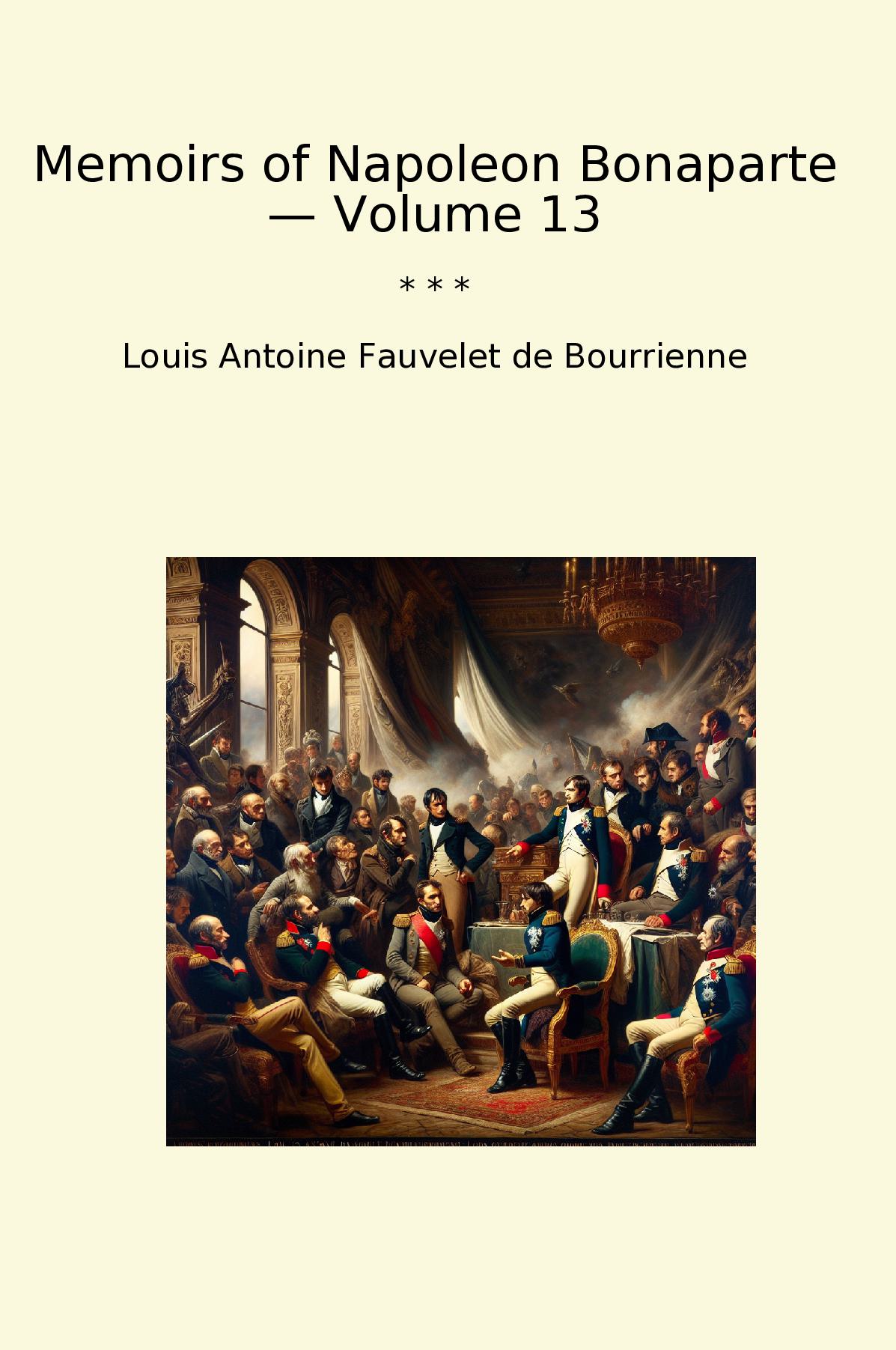 Memoirs of Napoleon Bonaparte — Volume 13 by Louis Antoine Fauvelet de Bourrienne provides an intimate glimpse into the life and mind of one of history’s most enigmatic figures. As a close confidant and secretary to Napoleon, Bourrienne captures the emperor’s charismatic personality, political strategies, and personal dilemmas. This volume delves into the latter years of Napoleon’s reign, offering insights into his relationships with key figures and the complexities of his leadership.Bourrienne’s narrative is both captivating and revealing, combining anecdotes with a detailed account of historical events. Readers gain a deeper understanding of Napoleon’s ambitions and the socio-political landscape of 19th-century Europe. The memoir is not just a biography but a reflection on power, ambition, and the human condition. Bourrienne's writing is engaging, making this volume a valuable resource for historians and casual readers alike seeking to comprehend the complexities surrounding Napoleon Bonaparte.