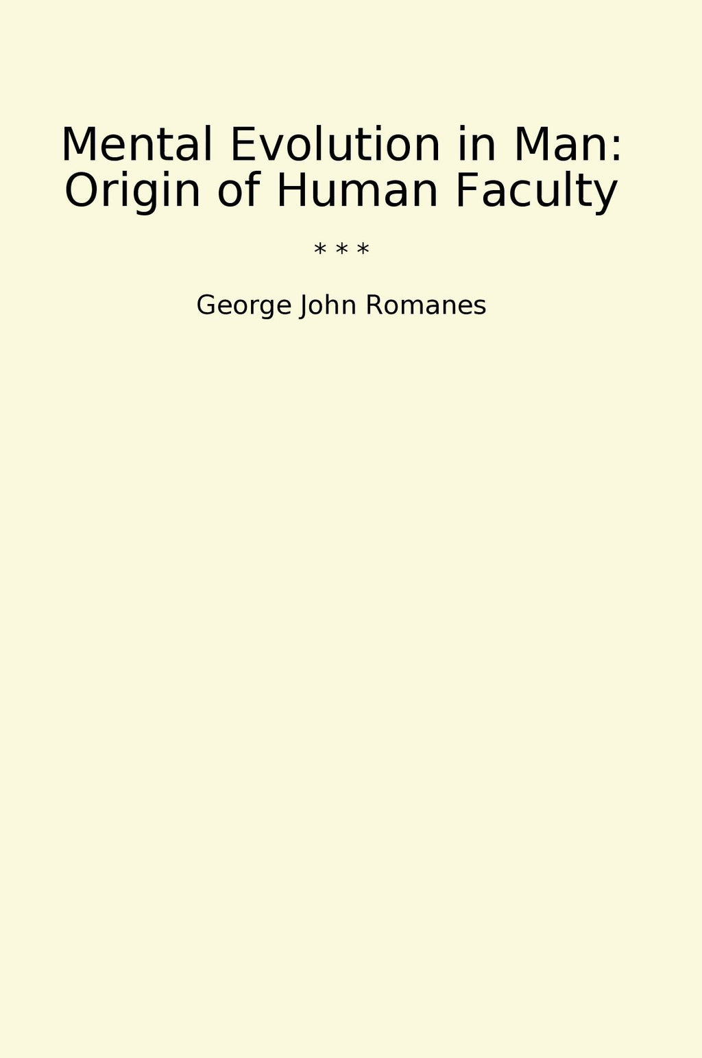 "Mental Evolution in Man: Origin of Human Faculty" by George John Romanes is a classic book that delves into the development of human cognitive abilities. Romanes, a respected biologist and philosopher, explores the mental evolution of mankind, focusing on the origins of human intelligence, reasoning, and consciousness. Through a combination of scientific research and philosophical insights, Romanes presents a thought-provoking analysis of how the human mind has evolved over time. This book is essential reading for anyone interested in understanding the complex processes behind human cognition and the factors that have shaped our intellectual capabilities. Romanes' exploration of the origins of human faculty provides valuable insights into the unique cognitive abilities that set us apart from other species.