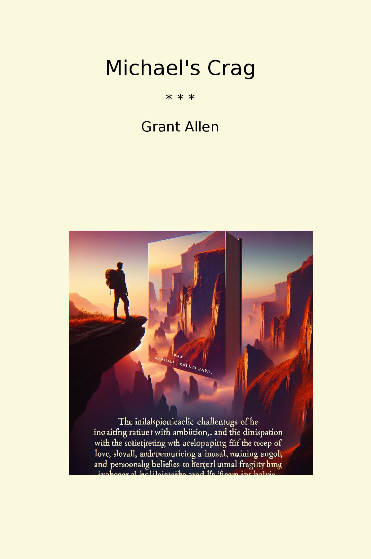 Michael's Crag, a captivating novella by Grant Allen, masterfully blends adventure and introspection within the scenic backdrop of a rugged landscape. The story follows the titular character, Michael, whose journey of self-discovery unfolds as he grapples with the complexities of love, ambition, and moral dilemmas. Set against the dramatic cliffs of a secluded crag, the narrative immerses readers in a world where nature's beauty contrasts sharply with human frailty. Allen's lyrical prose paints vivid imagery, inviting readers to experience the depth of Michael's struggles. The characters are richly drawn, each posing philosophical questions that challenge societal norms and personal beliefs. Through Michael's encounters and reflections, the novella explores themes of identity, fate, and the quest for meaning. Ultimately, Michael's Crag is a thought-provoking tale that resonates with anyone seeking solace in the tumultuous journey of life, showcasing Grant Allen's enduring literary prowess.