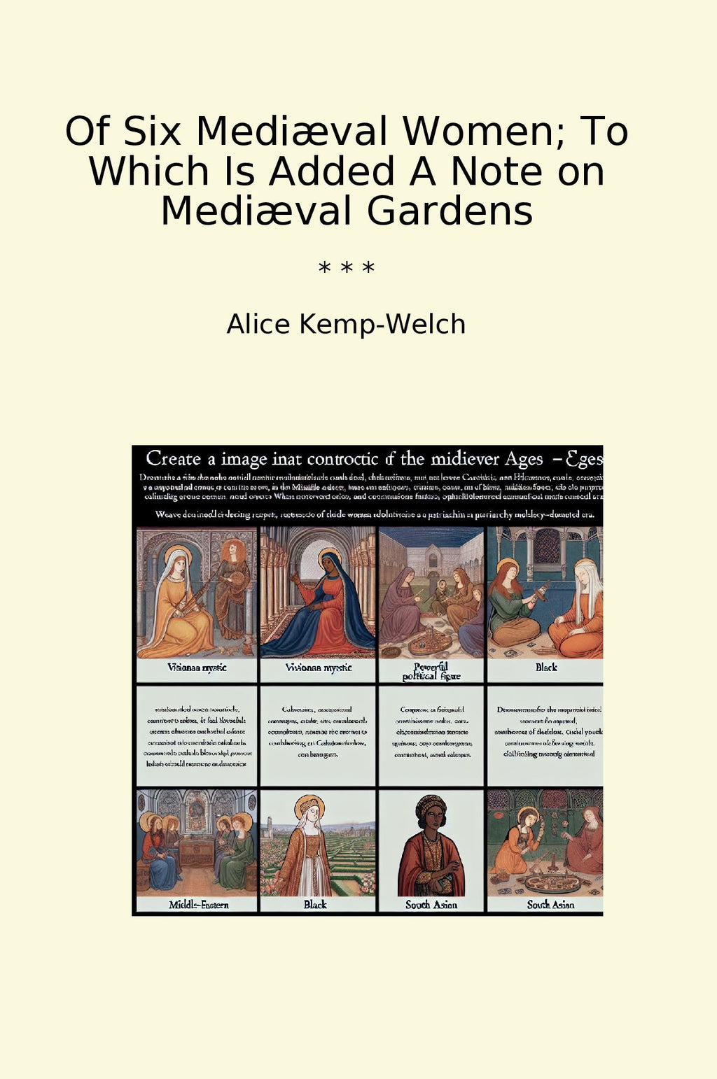 "Of Six Mediæval Women" by Alice Kemp-Welch is a fascinating exploration of notable female figures from the Middle Ages, shedding light on their lives, influences, and the societal contexts that shaped them. Kemp-Welch delves into the stories of women suc