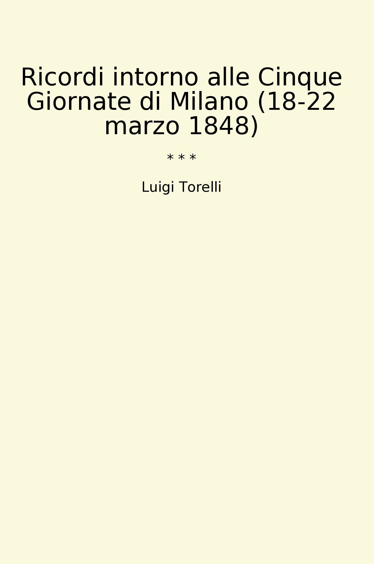 Ricordi intorno alle Cinque Giornate di Milano (18-22 marzo 1848) è un libro classico scritto da Luigi Torelli che narra in maniera dettagliata e coinvolgente gli eventi cruciali delle Cinque Giornate di Milano del 1848. Attraverso la penna di Torelli, il lettore viene trasportato indietro nel tempo, rivivendo le emozioni, le lotte e le vittorie del popolo milanese contro l'oppressione austriaca. Il libro offre uno sguardo approfondito sulla resistenza e sulla determinazione dei cittadini di Milano nel difendere la propria libertà e indipendenza. Grazie alla sua prosa accattivante e alla sua documentazione accurata, Ricordi intorno alle Cinque Giornate di Milano rappresenta un'autentica testimonianza storica e un tributo alla memoria dei protagonisti di quei giorni indimenticabili.
