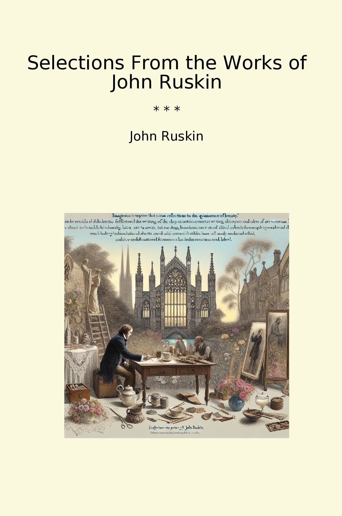 Selections From the Works of John Ruskin presents a compelling compilation of the influential writings of the Victorian art critic, social thinker, and advocate for the importance of beauty in life. Ruskin’s eloquent prose spans a variety of topics, including art, architecture, nature, and societal issues, reflecting his deep appreciation for the interconnectedness of beauty and morality. The selections showcase his profound insights into the role of art as a societal tool, advocating for an appreciation of craftsmanship and the dignity of labor. Through his observations, Ruskin critiques the industrialization of his time while calling for a return to the values of nature and the arts. This anthology serves as both an introduction for newcomers and a rich resource for those familiar with his works. Whether discussing the importance of Gothic architecture or the ethical implications of art, Ruskin’s timeless thoughts resonate with relevance, inviting readers to reflect on the significance of beauty in their own lives.