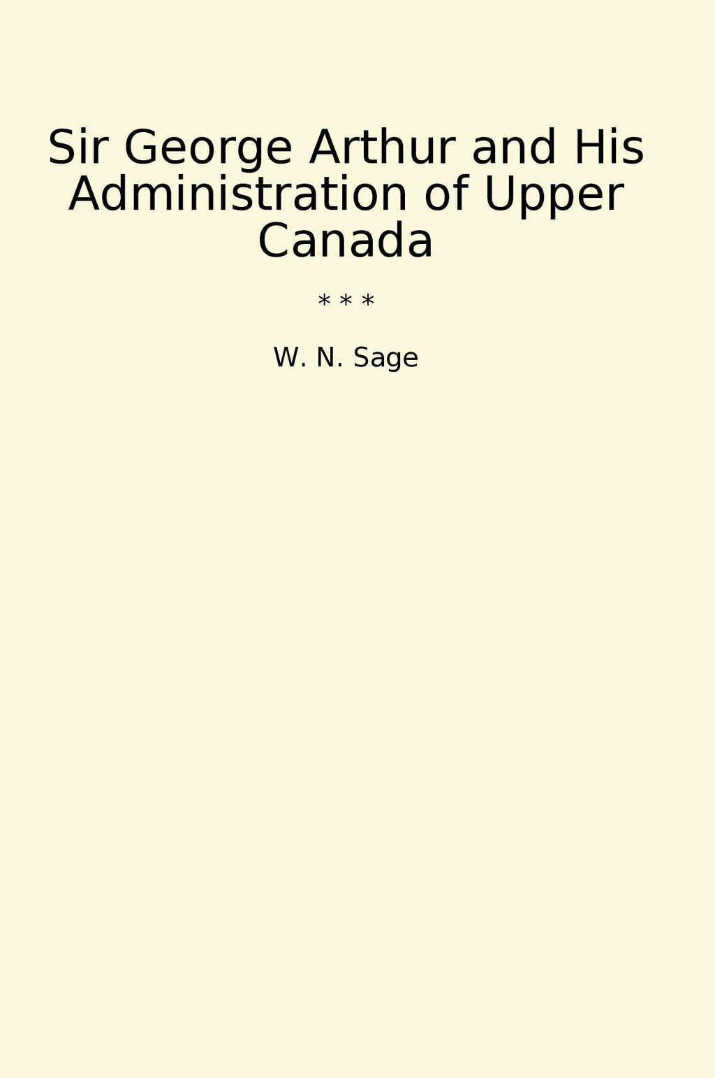Sir George Arthur and His Administration of Upper Canada