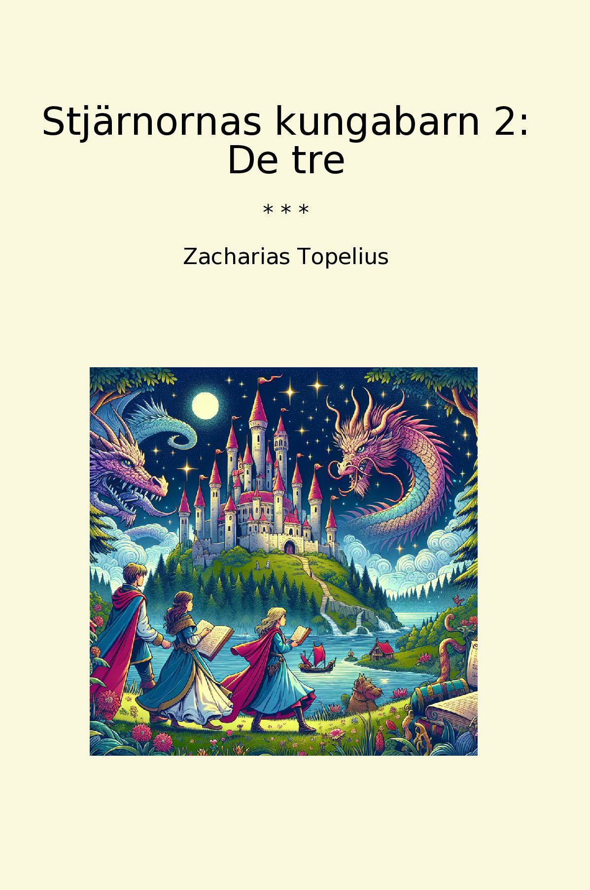Stjärnornas kungabarn 2: De tre är en klassisk bok skriven av den välkända författaren och skalden Zacharias Topelius. Boken berättar historien om de tre kungabarnen som är ättlingar till stjärnorna och deras äventyr för att rädda sitt rike och sina invånare från en ondskefull drake. Topelius använde sitt storslagna språk och sin fantastiska berättarförmåga för att skapa en magisk värld fylld med spänning, äventyr och mod. Genom att blanda element av sagor, myter och historia skapade han en berättelse som har fascinerat läsare i generationer. Stjärnornas kungabarn 2: De tre är en underbar bok som passar för både unga och vuxna som älskar spännande berättelser och fantasifulla världar.