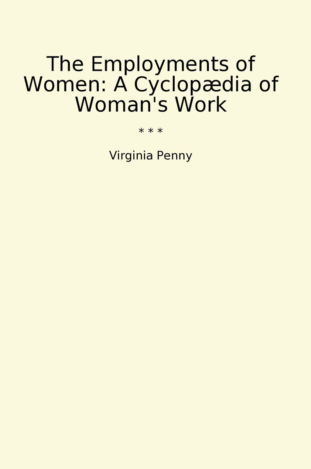 The Employments of Women: A Cyclopædia of Woman's Work by Virginia Penny is a pioneering piece of work that sheds light on the various roles and contributions of women in society. Originally published in 1863, this classic book provides a comprehensive overview of the different types of work that women were engaged in during that time. From household duties to professional careers, Penny's work highlights the diverse talents and capabilities of women across different fields. This book not only serves as a valuable historical document but also as an inspiration for women seeking to explore different employment opportunities. Through detailed descriptions and anecdotes, Penny eloquently showcases the importance of recognizing and valuing women's labor in all facets of society.