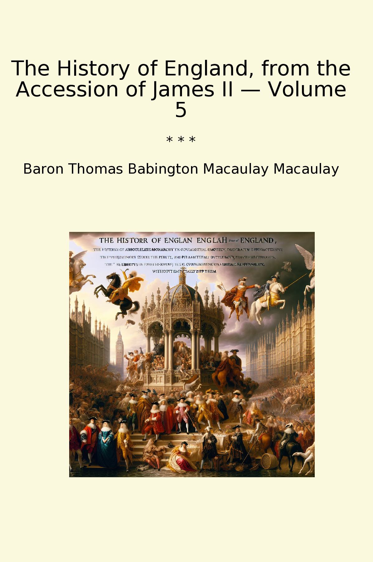 The History of England, from the Accession of James II – Volume 5 by Baron Thomas Babington Macaulay is a significant historical work that chronicles the pivotal events in England's political landscape during the late 17th and early 18th centuries. Macaulay, known for his vivid prose and engaging narrative style, meticulously examines the transition from absolute monarchy to parliamentary democracy, detailing the struggles of Whigs and Tories, as well as the influence of key figures like William of Orange and Queen Anne. In this volume, readers witness the complexities of political and social change, as Macaulay weaves together themes of liberty, governance, and moral responsibility. His deep insights into the motivations and contexts of historical actors provide a rich understanding of this transformative period. While critiques of his perspectives may arise, Macaulay's passionate storytelling and thorough research make this work a compelling read for both history enthusiasts and casual readers alike.