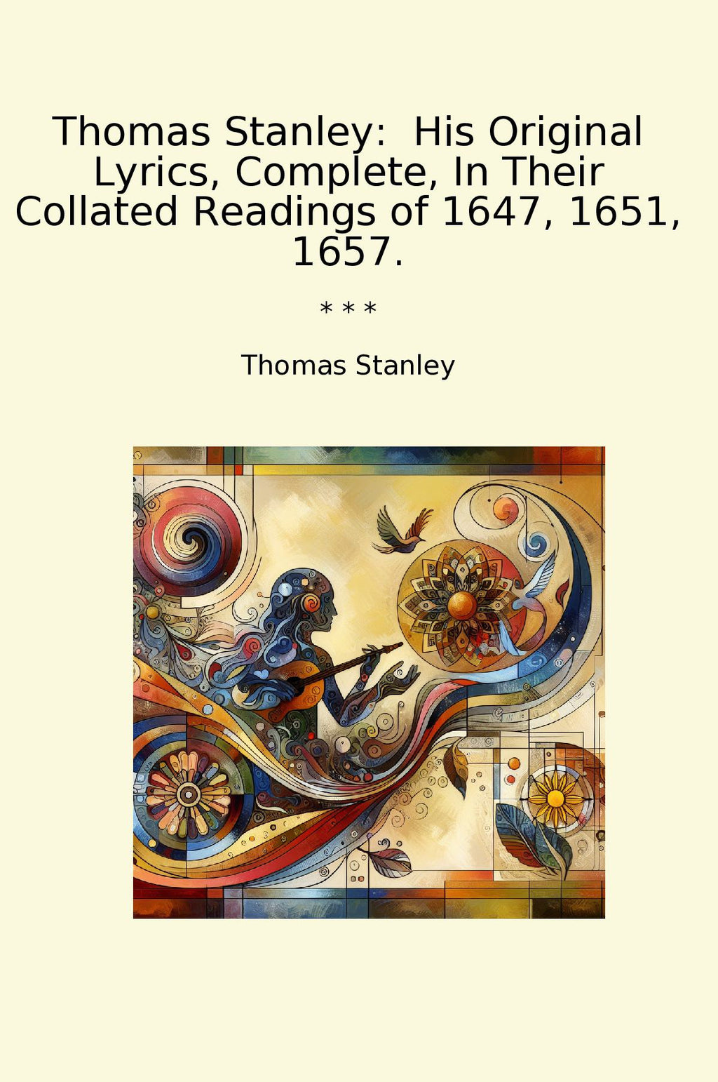 Thomas Stanley: His Original Lyrics, Complete, In Their Collated Readings of 1647, 1651, 1657 is a profound compilation of the works by the poet Thomas Stanley, an influential figure in 17th-century literature. This collection brings together Stanley's or
