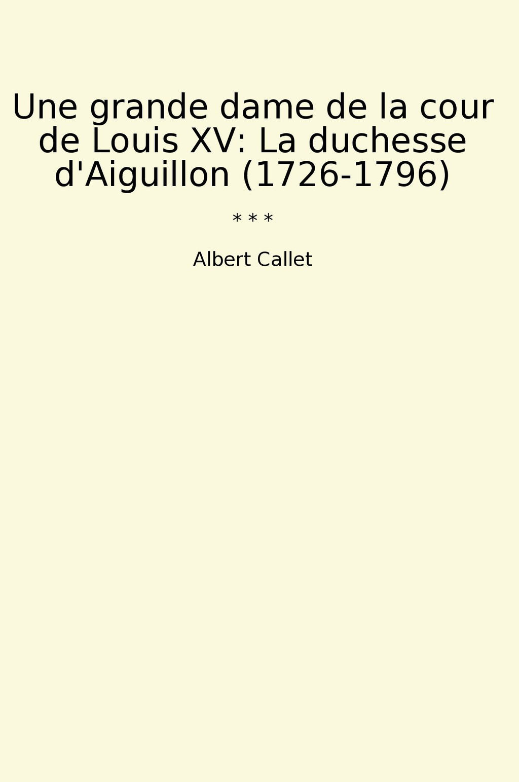 Dans "Une grande dame de la cour de Louis XV: La duchesse d'Aiguillon (1726-1796)", l'écrivain Albert Callet nous plonge dans la vie fascinante de la duchesse d'Aiguillon, une figure emblématique de la cour du roi Louis XV. À travers cette biographie captivante, Callet nous dépeint le parcours extraordinaire de cette femme de pouvoir et de grande influence, dont l'héritage perdure encore aujourd'hui. À travers les pages de ce livre, le lecteur découvrira les intrigues de la cour, les alliances politiques et les jeux de pouvoir qui ont marqué l'époque. Une plongée immersive dans l'histoire de la France du XVIIIe siècle, ce livre est un incontournable pour les amateurs d'histoire et de biographies fascinantes.