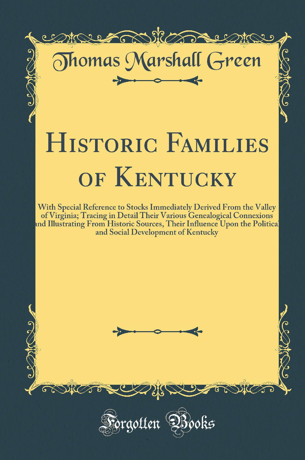Excerpt from Historic Families of Kentucky: With Special Reference to Stocks Immediately Derived From the Valley of Virginia; Tracing in Detail Their Various Genealogical Connexions and Illustrating From Historic Sources, Their Influence Upon the Political and Social Development of Kentucky