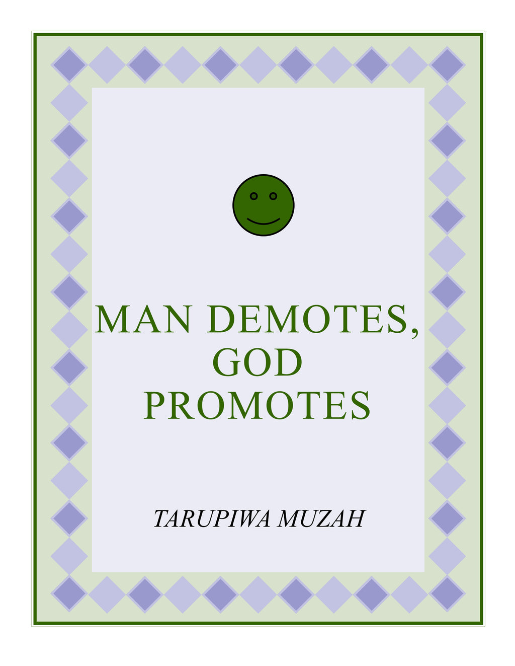 We can't let man determine our happiness and our worth, we have to trust in only God. Man says we are nothing, but God says we are big people. In this encouraging book, Tarupiwa brings you a message of hope and comfort. When faced with abuse, rejection and demotion, this book will give you lessons on how you can survive and thrive in such situations. YES, man can turn you down, but not with God, he will bring you up, and make you enter your destiny. This powerful book contains the secrets of your promotion by God, after man has demoted you. With Biblical characters, Tarupiwa helps readers to see beyond the hate, abuse, rejection or demotion and focus on God's love. We see David, Daniel, Job, Mordecai, Joseph, Shadrach, Mishack and Abednego, then Jesus, our Lord and Savior. We see how they were demoted by man then later promoted by God, and we learn a lot from their experiences. Be blessed as you read this book!!!