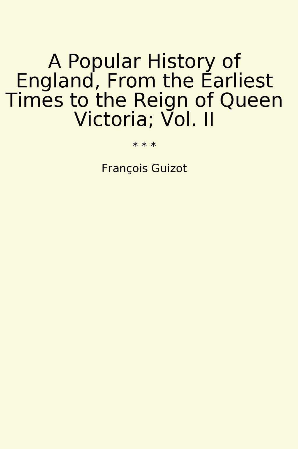 A Popular History of England, From the Earliest Times to the Reign of Queen Victoria; Vol. II by François Guizot is a comprehensive and engaging account of English history. Covering the period from the Norman Conquest to the reign of Queen Victoria, Guizot provides readers with a detailed overview of key events, political figures, and societal developments that shaped the nation. His writing is clear, concise, and accessible, making the book suitable for both casual readers and history enthusiasts alike. Guizot's meticulous research and insightful analysis bring the past to life, offering a fascinating glimpse into the evolution of England over the centuries. Whether you are a student of history or simply curious about the nation's heritage, this volume is a valuable resource that sheds light on the rich tapestry of England's past.