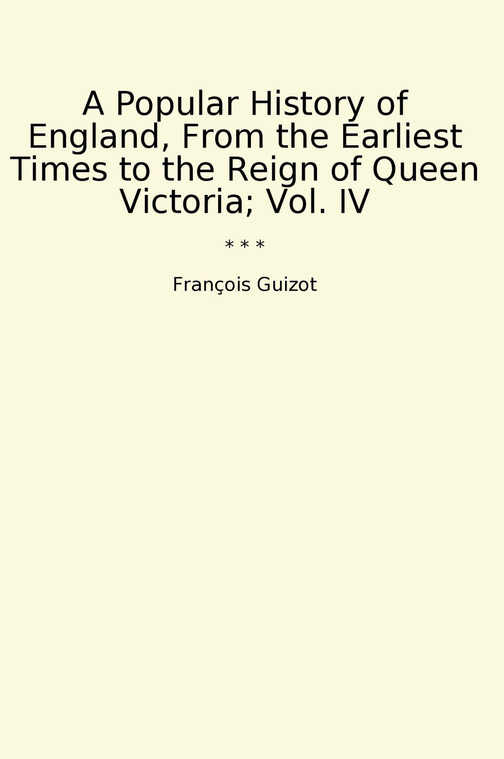 "A Popular History of England, From the Earliest Times to the Reign of Queen Victoria; Vol. IV" by François Guizot is a comprehensive and detailed account of England's history up to the reign of Queen Victoria. Guizot, a prominent French historian and politician, provides a insightful perspective on the events and figures that shaped the country's rich history. The book covers various significant periods in English history, including the Norman Conquest, the Magna Carta, the Tudor dynasty, and the political developments leading up to Queen Victoria's reign. With eloquent writing and thorough research, Guizot presents a captivating narrative that is both informative and engaging. This volume is a valuable resource for history enthusiasts and anyone interested in understanding the historical trajectory of England up to the 19th century.
