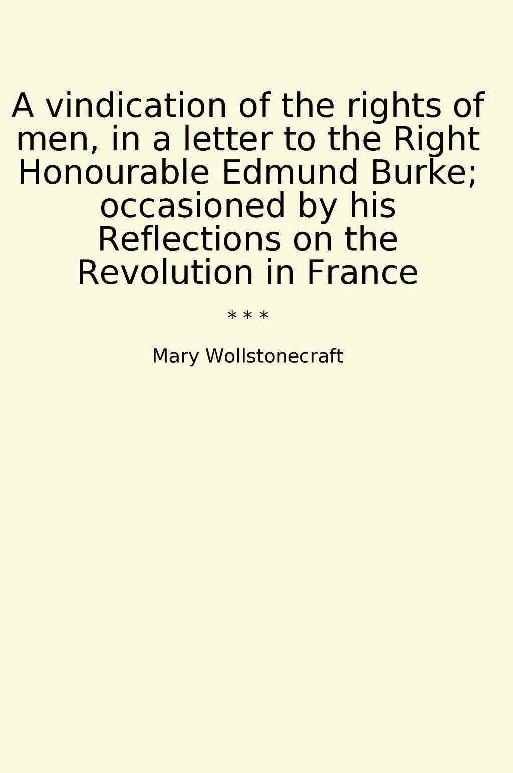 Mary Wollstonecraft's "A Vindication of the Rights of Men" is a powerful response to Edmund Burke's criticism of the French Revolution. In this impassioned letter to Burke, Wollstonecraft argues for the inherent rights and equality of all men, advocating for social and political reform. She challenges Burke's conservative views and defends the principles of democracy and freedom. Written with sharp intellect and persuasive rhetoric, Wollstonecraft's work is a seminal piece in the history of feminist and political thought. "A Vindication of the Rights of Men" is a groundbreaking text that continues to inspire readers to question authority and fight for justice and equality.