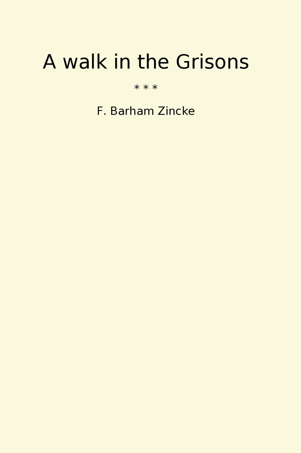 "A Walk in the Grisons" is a classic book written by F. Barham Zincke, an esteemed author and writer. This captivating tale takes readers on a journey through the stunning scenery of the Grisons region in Switzerland. Zincke's vivid descriptions and engaging narrative transport readers to a land of breathtaking natural beauty, where mountains, valleys, and lakes create a picturesque backdrop for adventure.