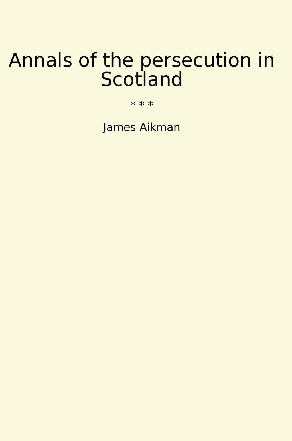 The Annals of the persecution in Scotland is a classic book written by James Aikman, an author and writer from Scotland. It is a compelling account of the religious persecution and political turmoil that took place in Scotland during the 17th century. Aikman provides a detailed narrative of the events that led to the persecution of the Covenanters, a group of Scottish Presbyterians who opposed the religious policies of the government. The book explores the intense persecution, torture, and executions that the Covenanters faced under the rule of King Charles II and his supporters. Aikman's writing style is engaging and vivid, bringing to life the struggles and sacrifices of these brave individuals. Through his meticulous research and compelling storytelling, the author sheds light on a dark and often overlooked period in Scottish history. The Annals of the persecution in Scotland is a must-read for anyone interested in Scottish history, religious persecution, and the fight for religious freedom.
