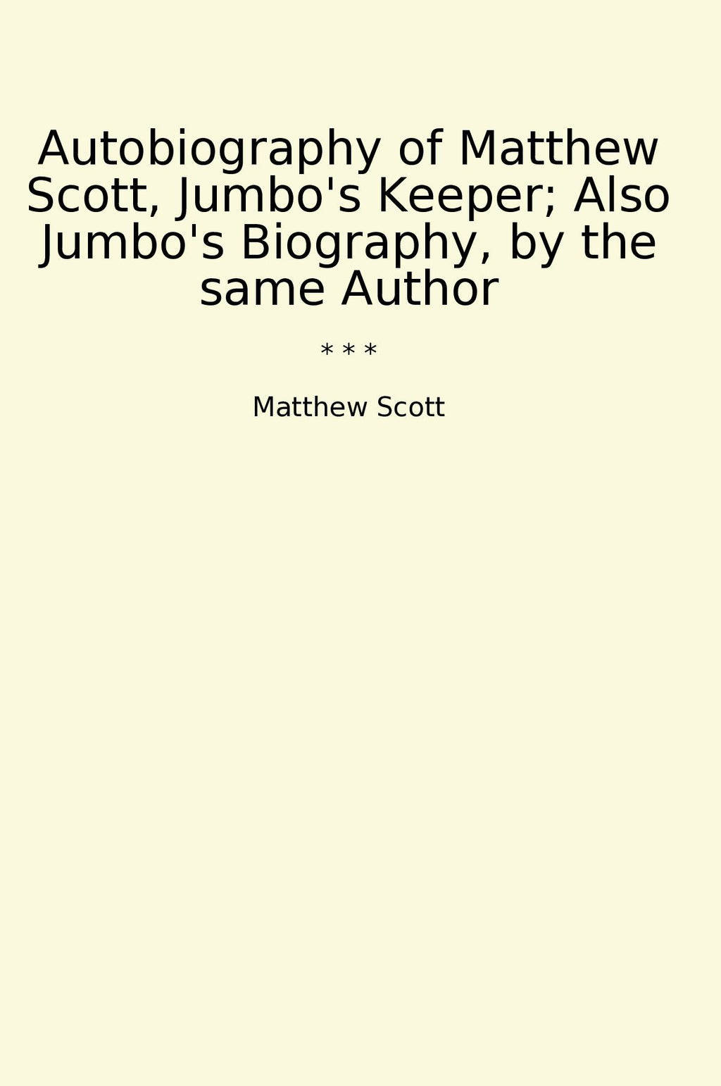 The classic book "Autobiography of Matthew Scott, Jumbo's Keeper; Also Jumbo's Biography" delves into the extraordinary life of Matthew Scott, the renowned keeper of Jumbo the Elephant. This captivating autobiography offers a firsthand account of Scott's experiences caring for one of the most iconic animals in history. From their travels together to the deep bond they shared, Scott's storytelling brings to life the unique relationship between man and elephant.