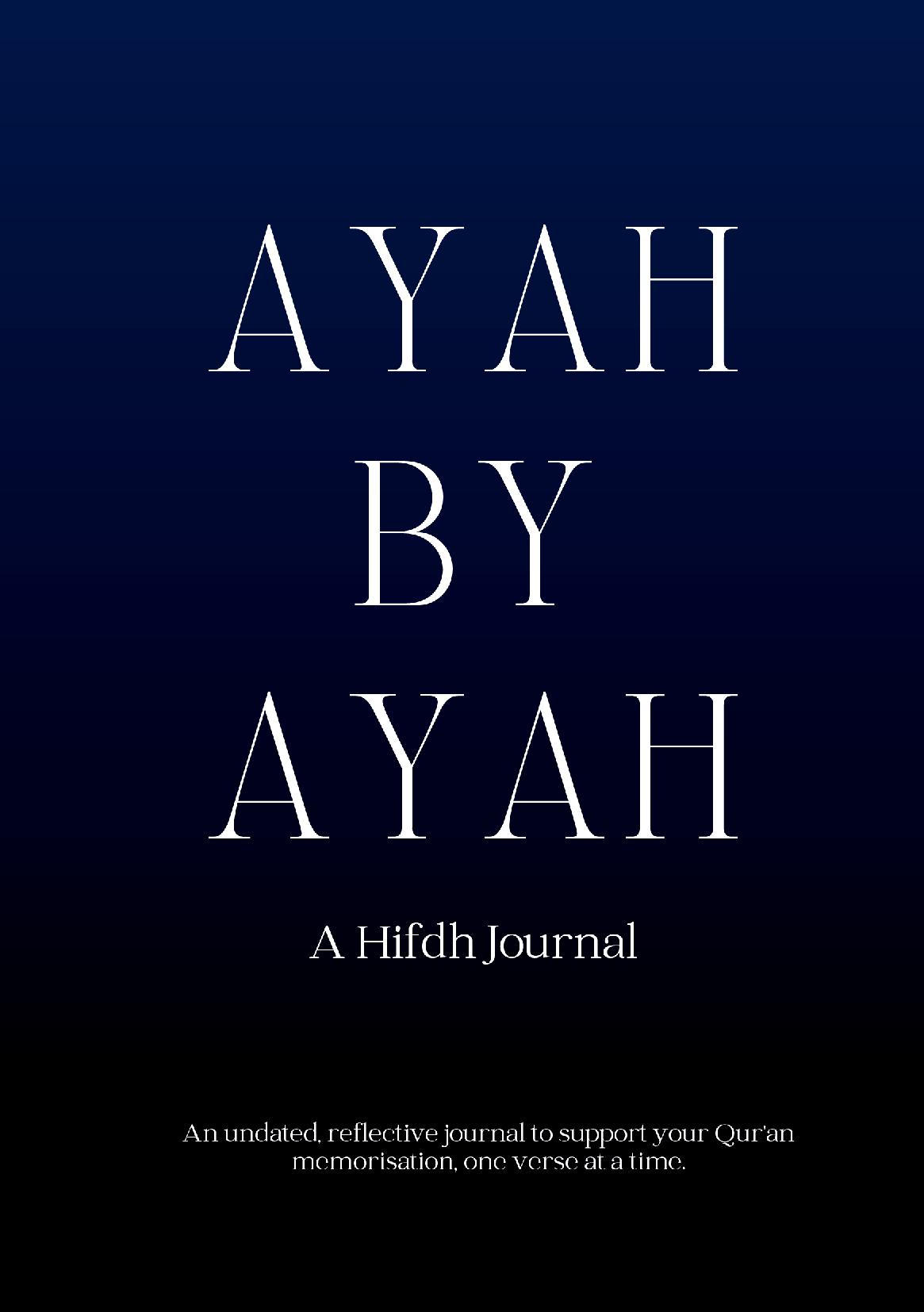 Ayah by Ayah: A Hifdh Journal is an undated journal designed to support teens/adults on their Qur’an memorisation path, no matter where they are in their journey.