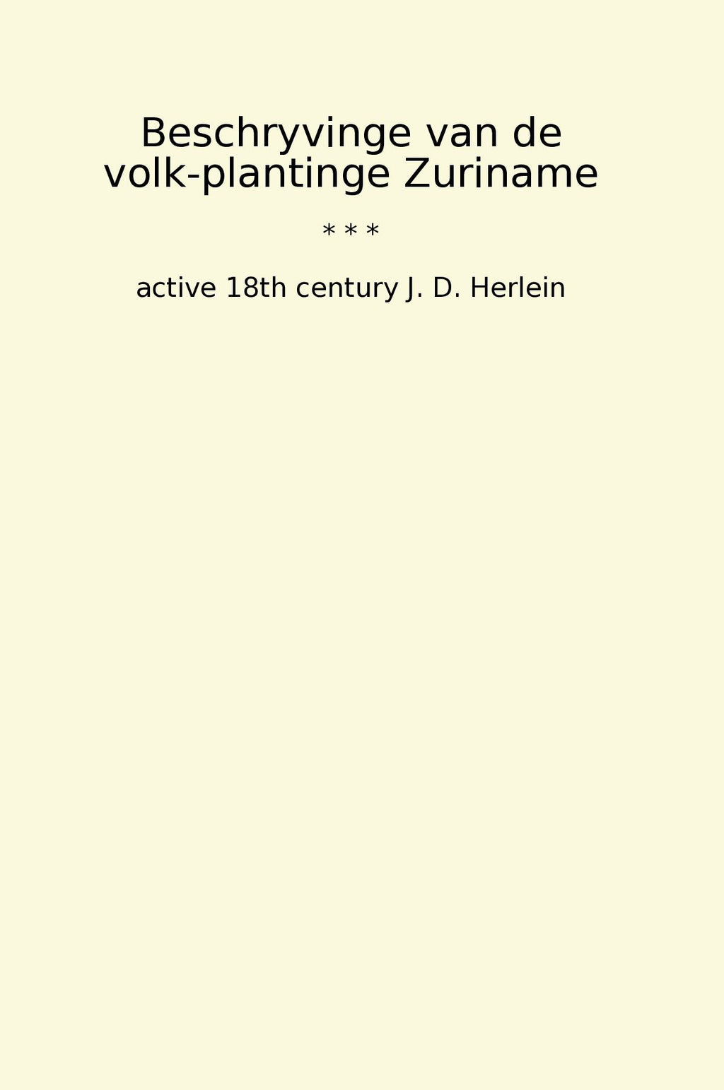"Beschryvinge van de volk-plantinge Zuriname" is een belangrijk werk van de 18e-eeuwse auteur J. D. Herlein, dat een gedetailleerde beschrijving biedt van de Nederlandse kolonie Suriname. Geschreven vanuit het perspectief van een tijdgenoot, documenteert Herlein niet alleen de natuurlijke schoonheid en rijkdom van het land, maar geeft ook inzicht in de sociale, economische en politieke structuren van de tijd.