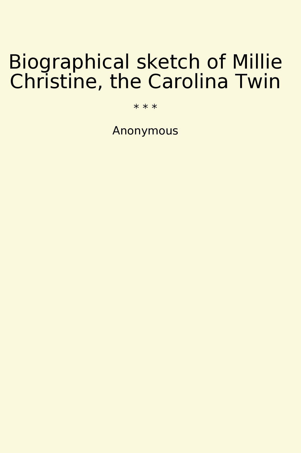"Biographical Sketch of Millie Christine, the Carolina Twin" is a classic book that tells the remarkable story of Millie Christine, a conjoined twin born into slavery in North Carolina in 1851. Despite the challenges they faced, Millie Christine lived an extraordinary life as performers, captivating audiences with their singing and dancing abilities. The book explores their journey from slavery to fame, shedding light on the hardships they endured and the resilience they demonstrated throughout their lives. Written by an anonymous author, this biographical sketch offers a fascinating glimpse into the life of Millie Christine and highlights their incredible strength and determination in the face of adversity. It is a compelling and inspiring read that celebrates the unique spirit of these extraordinary individuals.