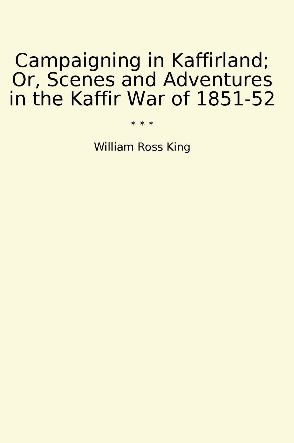 "Campaigning in Kaffirland" by William Ross King is a classic account of the Kaffir War of 1851-52 during British colonial rule in South Africa. The book offers a detailed and gripping narrative of the challenges, experiences, and adventures faced by soldiers during this conflict. King vividly describes the landscapes, battles, and interactions with the Kaffir people, providing insight into the complexities of colonial warfare and the lasting impact on both sides. Through personal anecdotes and historical analysis, King offers a compelling perspective on the military campaign and the cultural context of the time. "Campaigning in Kaffirland" is a valuable historical document and a fascinating read for those interested in military history and colonial encounters.