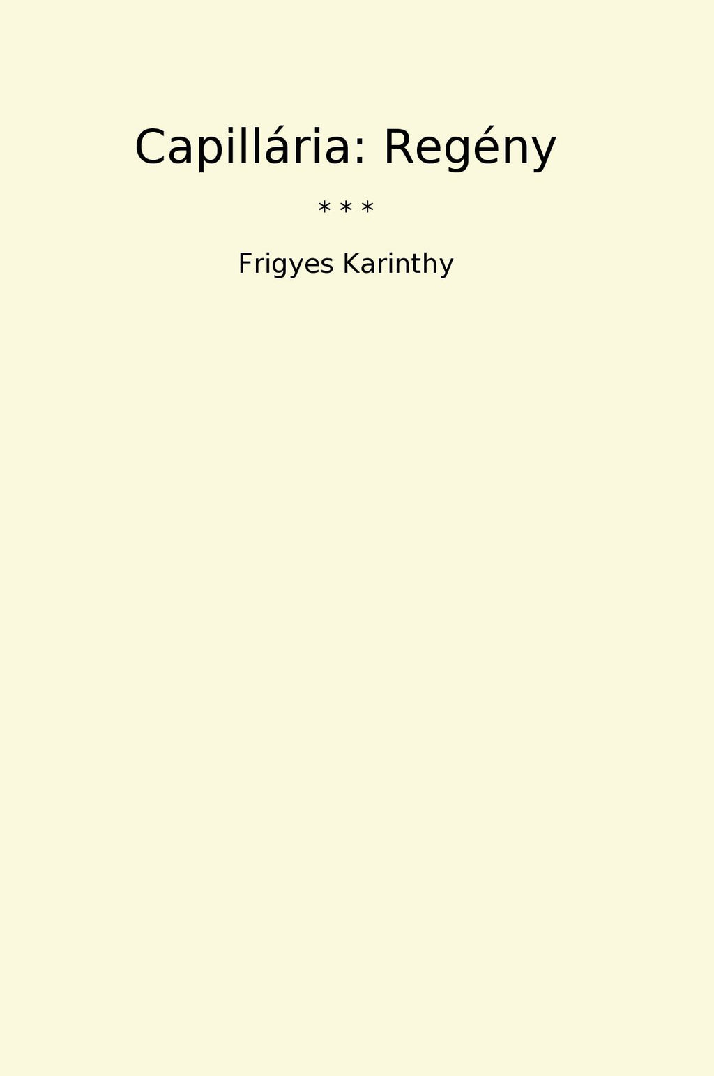 "Capillária: Regény" a magyar író, Karinthy Frigyes egyik legismertebb muve, amely egy fantasztikus helyzetkomikumot mutat be. A történet középpontjában egy fiatal férfi áll, aki abban a hitben él, hogy teljesen egészséges. Azonban egy nap egy orvos hirtelen beköltözik az épületbe, és megkezdi a vizsgálatát. Ekkor derül ki, hogy a fiatal férfi testét apró paraziták, a kapilláriák hálózzák be. Ez a felfedezés megrázza az embert, és elindítja egy fantasztikus kalandot, ahol a foszereplo mindent megpróbál megszabadulni a kapilláriáktól.