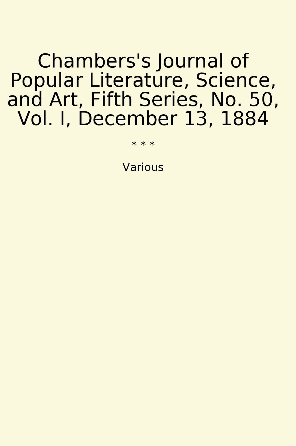 Chambers's Journal of Popular Literature, Science, and Art, Fifth Series, No. 50, Vol. I, December 13, 1884