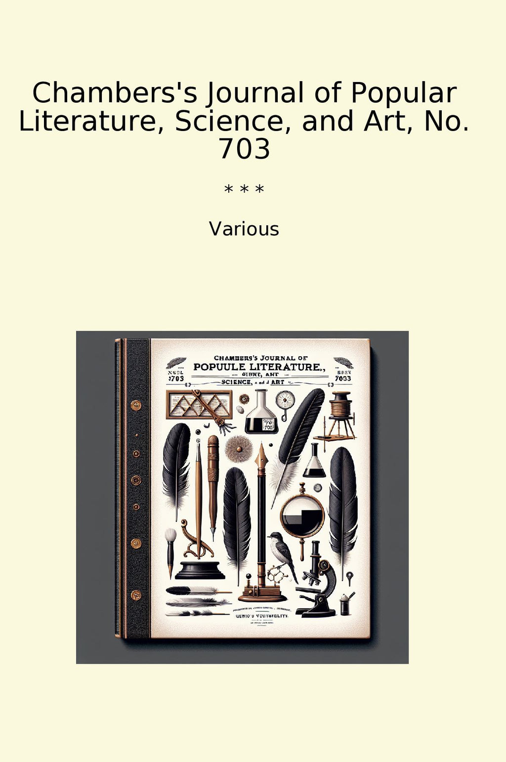 Chambers's Journal of Popular Literature, Science, and Art, No. 703 is a classic publication that offers a diverse range of content to its readers. This edition features a collection of engaging articles on various topics including literature, science, and art. Written by various authors and experts in their respective fields, the journal provides readers with a wealth of knowledge and entertainment.