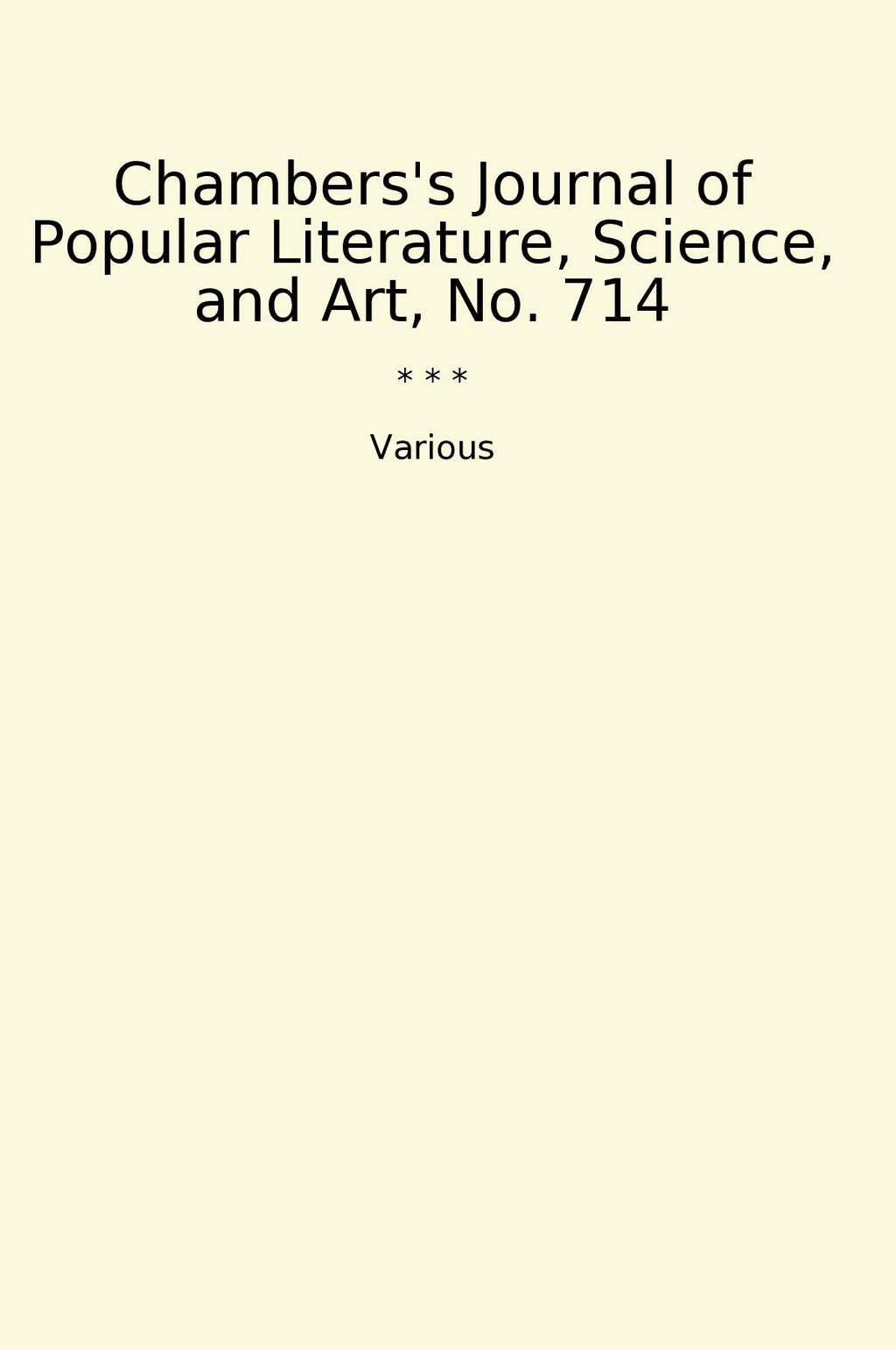 Chambers's Journal of Popular Literature, Science, and Art, No. 714, is a classic collection of essays, articles, and stories covering a wide range of topics. Originally published in the 19th century, this edition presents a fascinating glimpse into the popular culture of the time. Readers can immerse themselves in engaging literature, explore cutting-edge scientific discoveries, and appreciate the beauty of art in its various forms. The journal provides readers with a well-rounded and thought-provoking experience, making it a valuable resource for those interested in history, literature, science, and art. With contributions from various authors and writers, Chambers's Journal of Popular Literature, Science, and Art, No. 714, offers a diverse and captivating read that is sure to entertain and educate readers of all backgrounds.