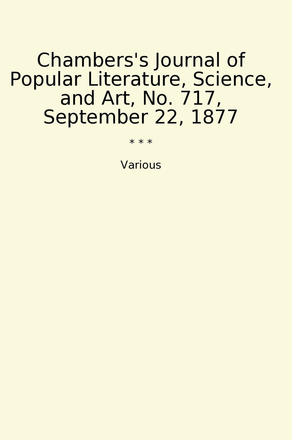 Chambers's Journal of Popular Literature, Science, and Art, No. 717, September 22, 1877, is a classic publication that offers a diverse range of content that includes literature, science, and art. This issue provides readers with a variety of engaging articles, stories, and informative pieces that cater to a wide audience. Whether you are interested in the latest scientific discoveries, captivating literature, or stunning artwork, this journal has something for everyone. With its blend of entertainment and education, Chambers's Journal continues to be a timeless source of knowledge and enjoyment for readers of all ages.
