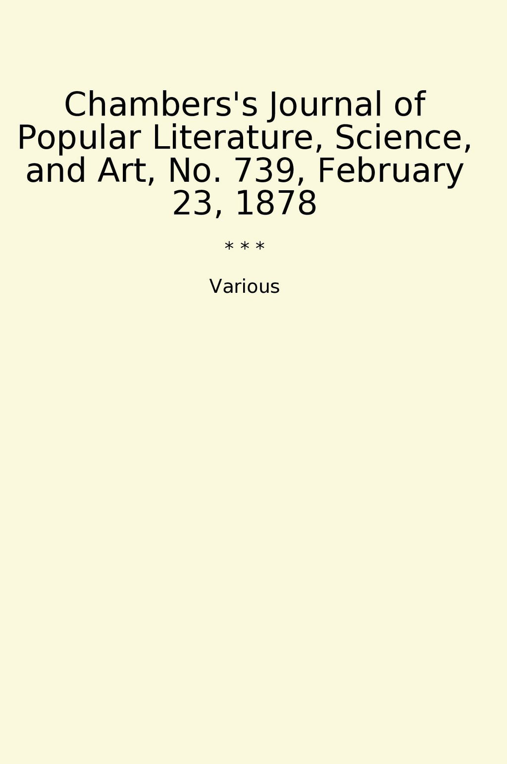 Chambers's Journal of Popular Literature, Science, and Art, No. 739, February 23, 1878 is a classic publication that offers a diverse range of content to its readers. This issue includes a mix of literature, scientific discoveries, and artistic insights that cater to a wide audience. The articles are engaging and informative, covering a variety of topics that were relevant during the late 19th century. Readers can expect to find a combination of fiction, non-fiction, and poetry that provide both entertainment and knowledge. Whether you are interested in literature, science, or art, this issue of Chambers's Journal has something for everyone. It is a timeless publication that continues to captivate readers with its blend of popular subjects and quality writing.