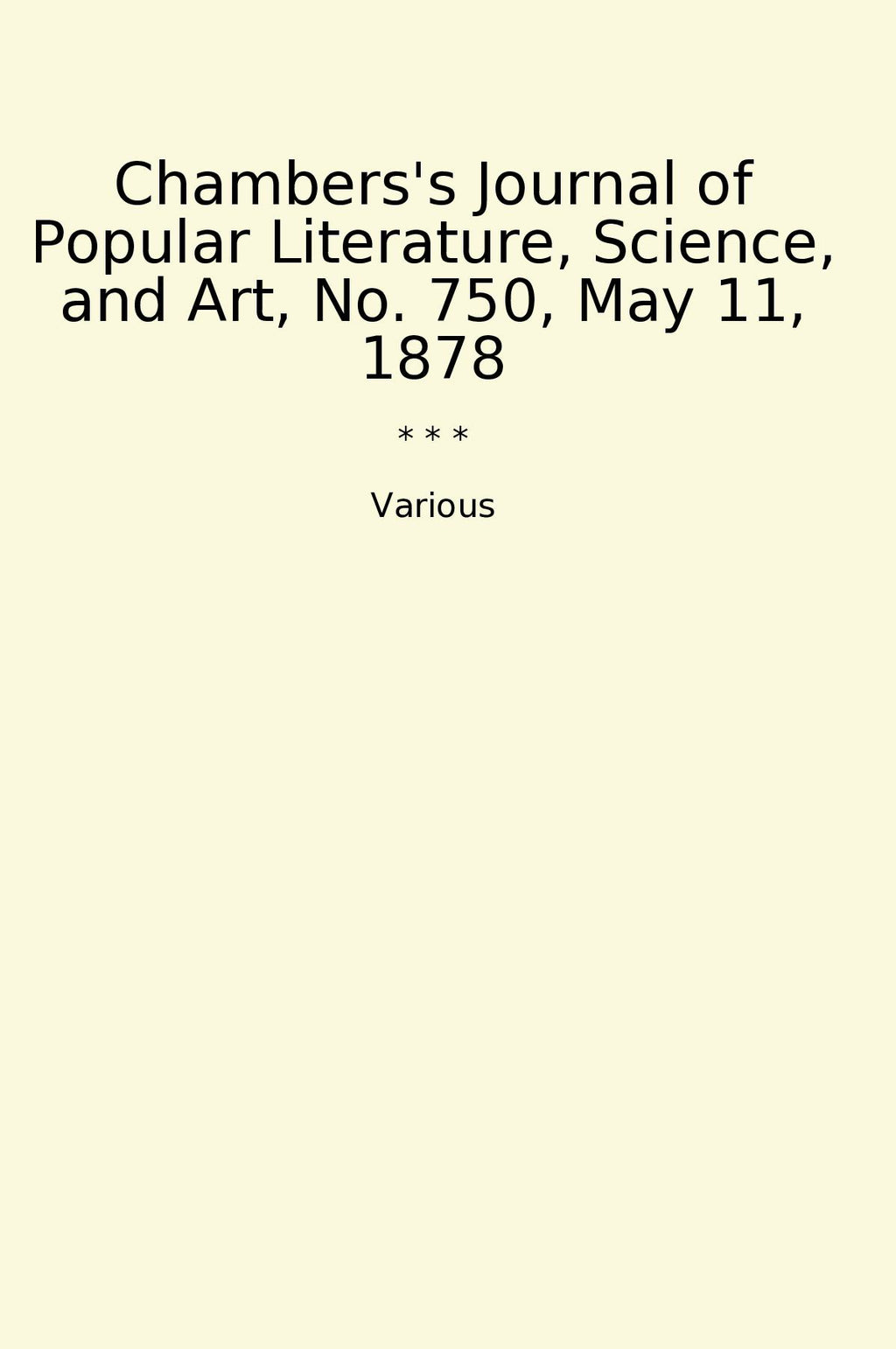 Chambers's Journal of Popular Literature, Science, and Art, No. 750, May 11, 1878, is a classic publication that offers a fascinating glimpse into the world of popular culture, scientific developments, and artistic endeavors of the late 19th century. This edition is packed with a diverse range of articles, stories, and illustrations that cater to the interests of a wide audience. From engaging narratives to insightful discussions on current events and discoveries, each page of this journal is a window into the past, showcasing the trends and ideas that shaped society at the time. Readers will find themselves immersed in a world where literature, science, and art intersect, providing a comprehensive and entertaining reading experience. Chambers's Journal continues to be a valuable resource for those interested in exploring the cultural landscape of the Victorian era.