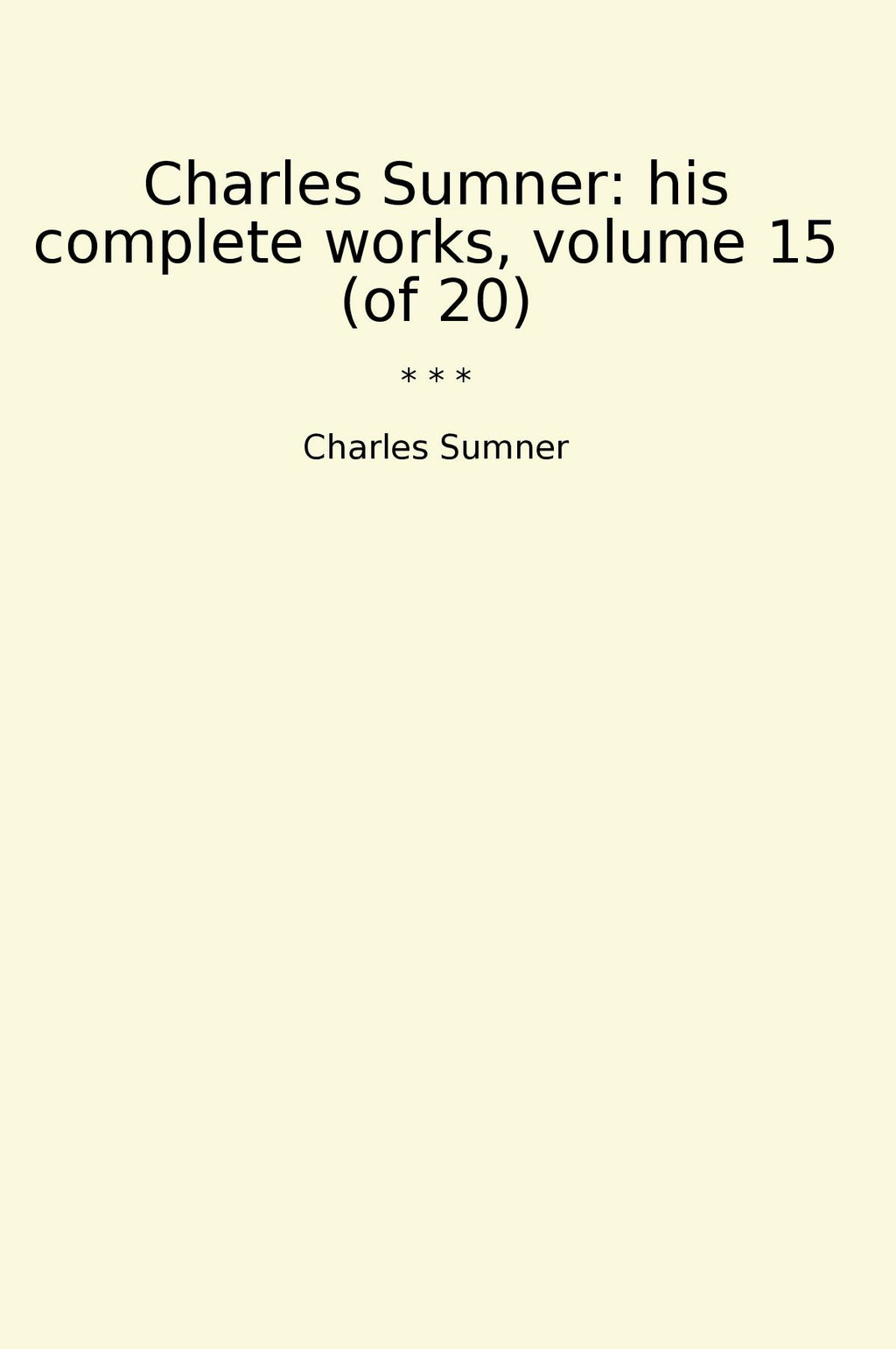 "Charles Sumner: his complete works, volume 15" is a classic collection of influential political writings by Charles Sumner, a renowned American politician and statesman. Known for his outspoken views on civil rights, abolitionism, and international relations, Sumner played a significant role in shaping American history during the 19th century. This volume provides readers with a comprehensive look at the thoughts and ideas of one of the most prominent figures of his time. Sumner's eloquent and impassioned essays cover a wide range of topics, shedding light on the complex issues that dominated the political landscape of his era. For those interested in American history and political philosophy, this volume serves as a valuable resource and a fascinating glimpse into the mind of a true intellectual and visionary.