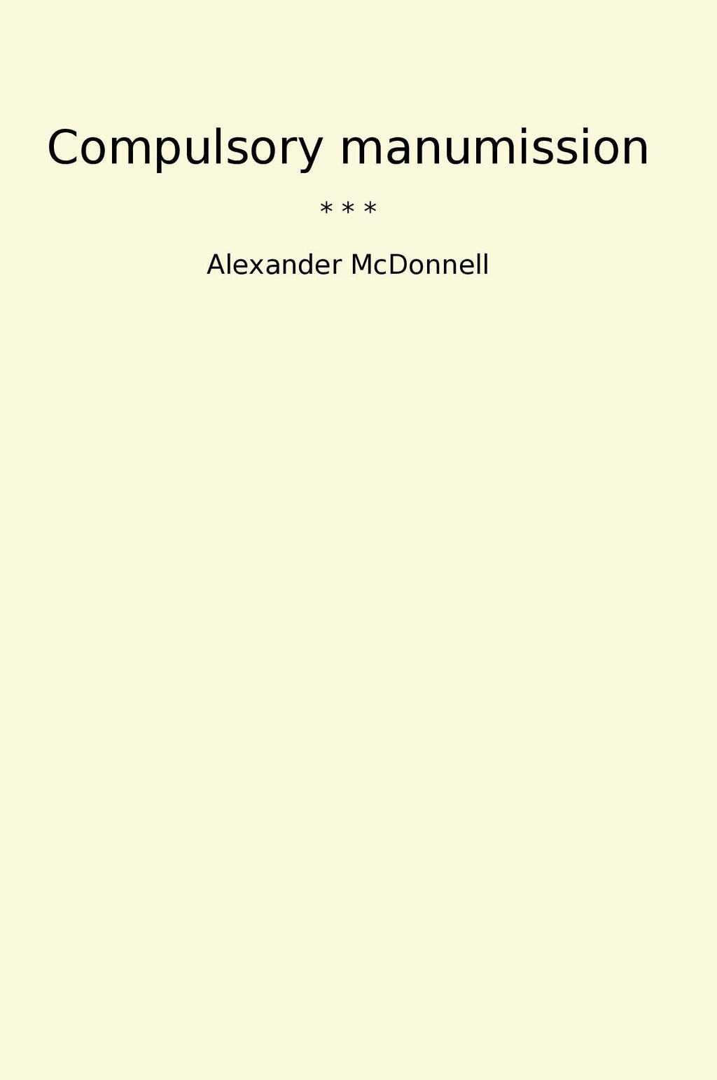 "Compulsory Manumission" by Alexander McDonnell is a classic book that delves into the intricacies of manumission, the act of freeing slaves. McDonnell takes readers on a journey through different historical contexts where compulsory manumission was enforced, highlighting the political, social, and ethical implications of such practices. The book is rich in insight and analysis, providing a thorough exploration of the complexities surrounding emancipation and liberation. McDonnell's writing is informative and engaging, making this book a must-read for anyone interested in the history of slavery and the struggles for freedom. "Compulsory Manumission" is a thought-provoking and enlightening read that sheds light on an important aspect of human history.