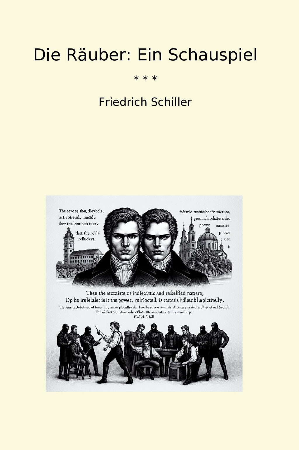 Die Räuber ist ein Schauspiel von Friedrich Schiller, das erstmals im Jahre 1782 veröffentlicht wurde. Das Stück handelt von den Brüdern Karl und Franz von Moor, die sich aufgrund von Eifersucht und Machtkämpfen gegenüberstehen. Franz, der ältere Bruder, hat Karl enterbt und aufgrund seines skrupellosen Verhaltens verbannt. Karl, ein idealistischer und rebellischer Charakter, schließt sich daraufhin einer Gruppe von Räubern an und plant einen Aufstand gegen die Gesellschaft und seinen Bruder Franz. Schiller schafft es, in diesem Drama komplexe Themen wie Familienbeziehungen, Machtstrukturen und die Suche nach Identität zu behandeln. "Die Räuber" ist ein bedeutendes Werk der deutschen Literaturgeschichte und sorgte zu seiner Zeit für Kontroversen und Aufsehen.
