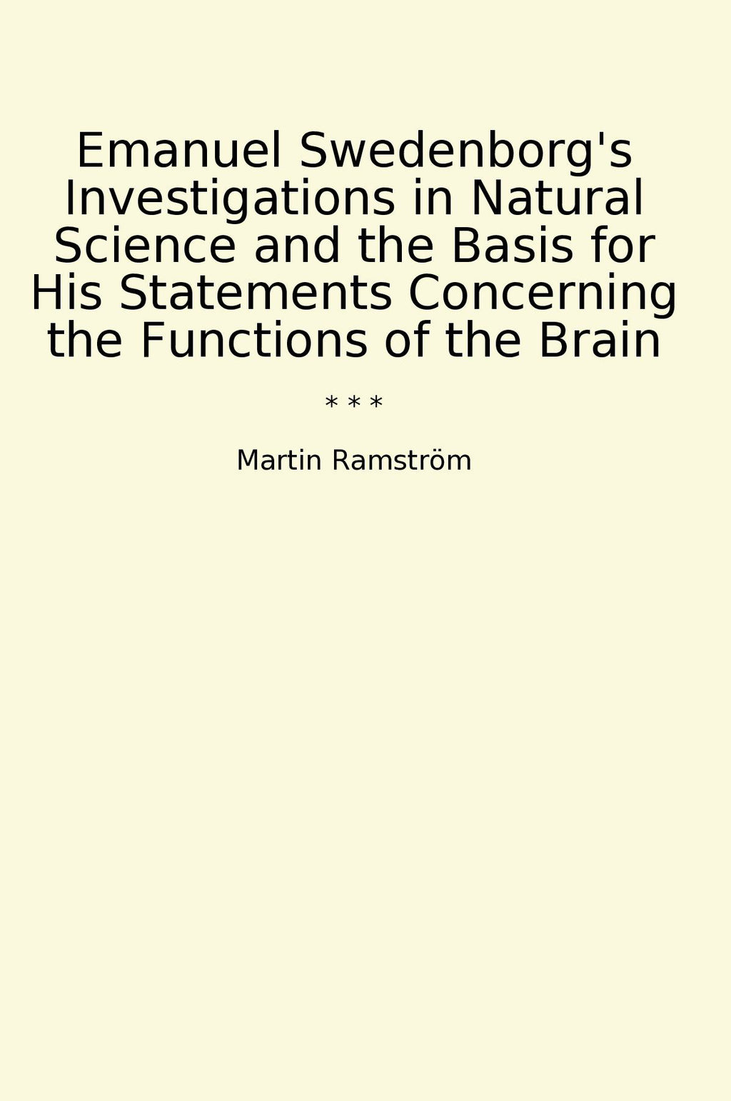 Emanuel Swedenborg's "Investigations in Natural Science and the Basis for His Statements Concerning the Functions of the Brain" is a pioneering work that delves into the intricate workings of the brain. Written by Martin Ramström, this classic book explores Swedenborg's groundbreaking theories on the brain's functions, drawing on his extensive research and observations. Swedenborg's insights challenge traditional notions and offer a profound understanding of the brain's capabilities. Ramström's analysis provides readers with a deep and thought-provoking exploration of Swedenborg's contributions to the field of neuroscience. This book is essential reading for those interested in the intersection of science, philosophy, and spirituality, offering a unique perspective on the mysteries of the human mind.