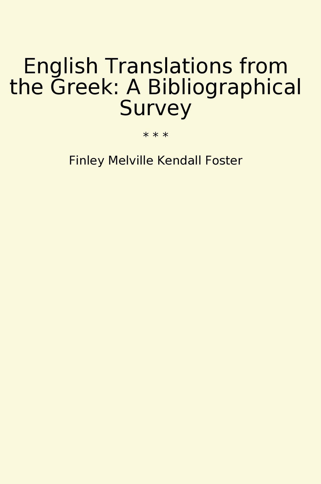English Translations from the Greek: A Bibliographical Survey by Finley Melville Kendall Foster is a comprehensive and invaluable resource for scholars and students interested in Greek literature. This classic book provides a detailed survey of English tr