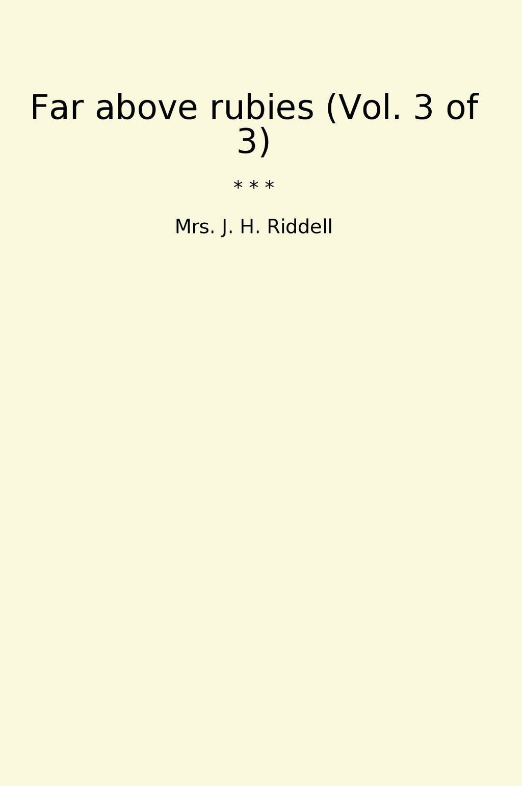 Far Above Rubies is the third and final volume in the series written by Mrs. J.H. Riddell. The book takes place in England during the 19th century and follows the story of Angela Leigh, a young woman who is determined to defy societal norms and pursue a career as a journalist. As she navigates the challenges and obstacles of a male-dominated industry, Angela also finds herself caught in a love triangle between two men who have very different expectations of her.