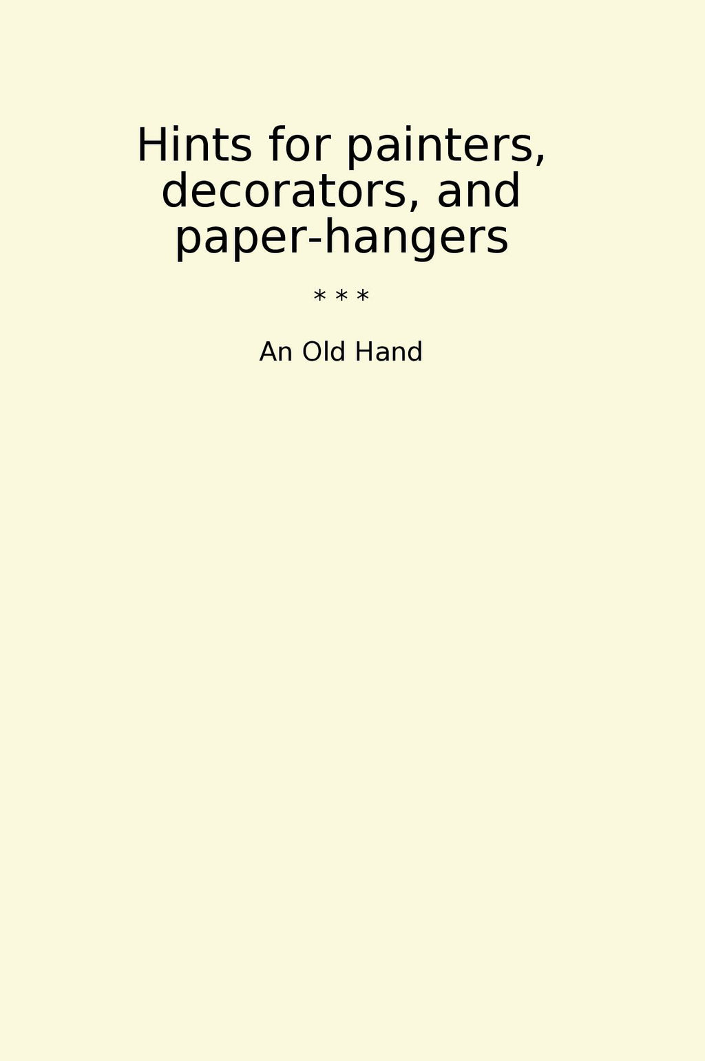 "Hints for painters, decorators, and paper-hangers" is a classic book by An Old Hand, an experienced and knowledgeable author and writer. This insightful guide provides a wealth of valuable information and advice for those in the painting, decorating, and paper-hanging professions.