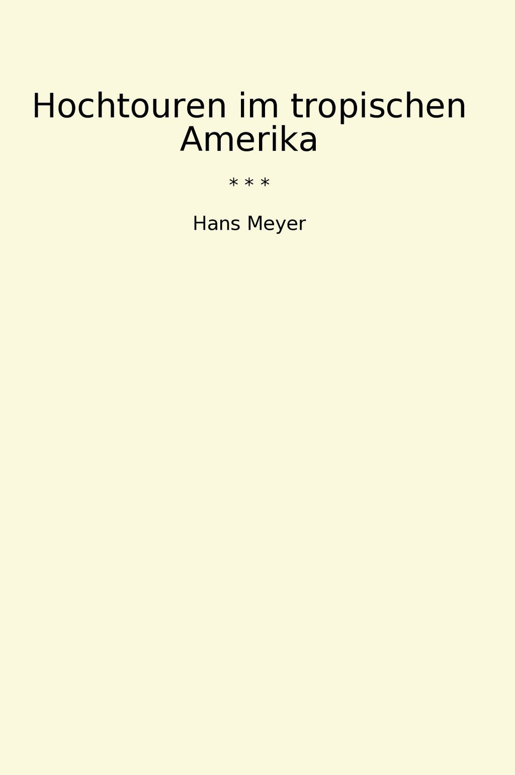 "Hochtouren im tropischen Amerika" ist ein Klassiker der Abenteuerliteratur von Hans Meyer. In diesem Buch erzählt der Autor von seinen aufregenden Expeditionen in den tropischen Regionen Amerikas. Meyer nimmt den Leser mit auf gefährliche Bergtouren und Dschungelabenteuer, bei denen er nicht nur physische Herausforderungen meistern muss, sondern auch auf interessante Begegnungen mit den Bewohnern der Region stößt.