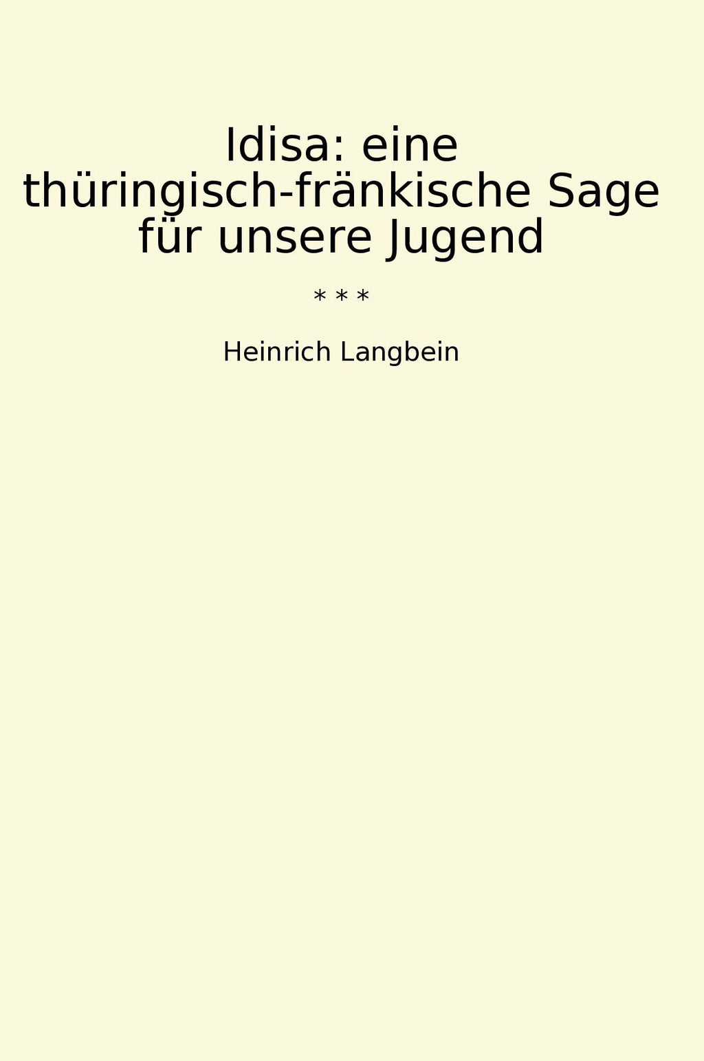 In dem Märchen "Idisa: eine thüringisch-fränkische Sage für unsere Jugend" erzählt Heinrich Langbein die Geschichte von Idisa, einer mutigen jungen Frau, die den tapferen Krieger Widukind heiratet. Gemeinsam kämpfen sie gegen feindliche Mächte und erleben spannende Abenteuer in den Wäldern Thüringens und Franken. Die Sage erzählt von Liebe, Tapferkeit und dem Glauben an das Gute im Menschen. Heinrich Langbein schafft es, die Leser mit seiner lebendigen Sprache und den fesselnden Beschreibungen in den Bann zu ziehen. "Idisa" ist ein zeitloser Klassiker, der nicht nur die Jugend, sondern auch Erwachsene faszinieren wird.