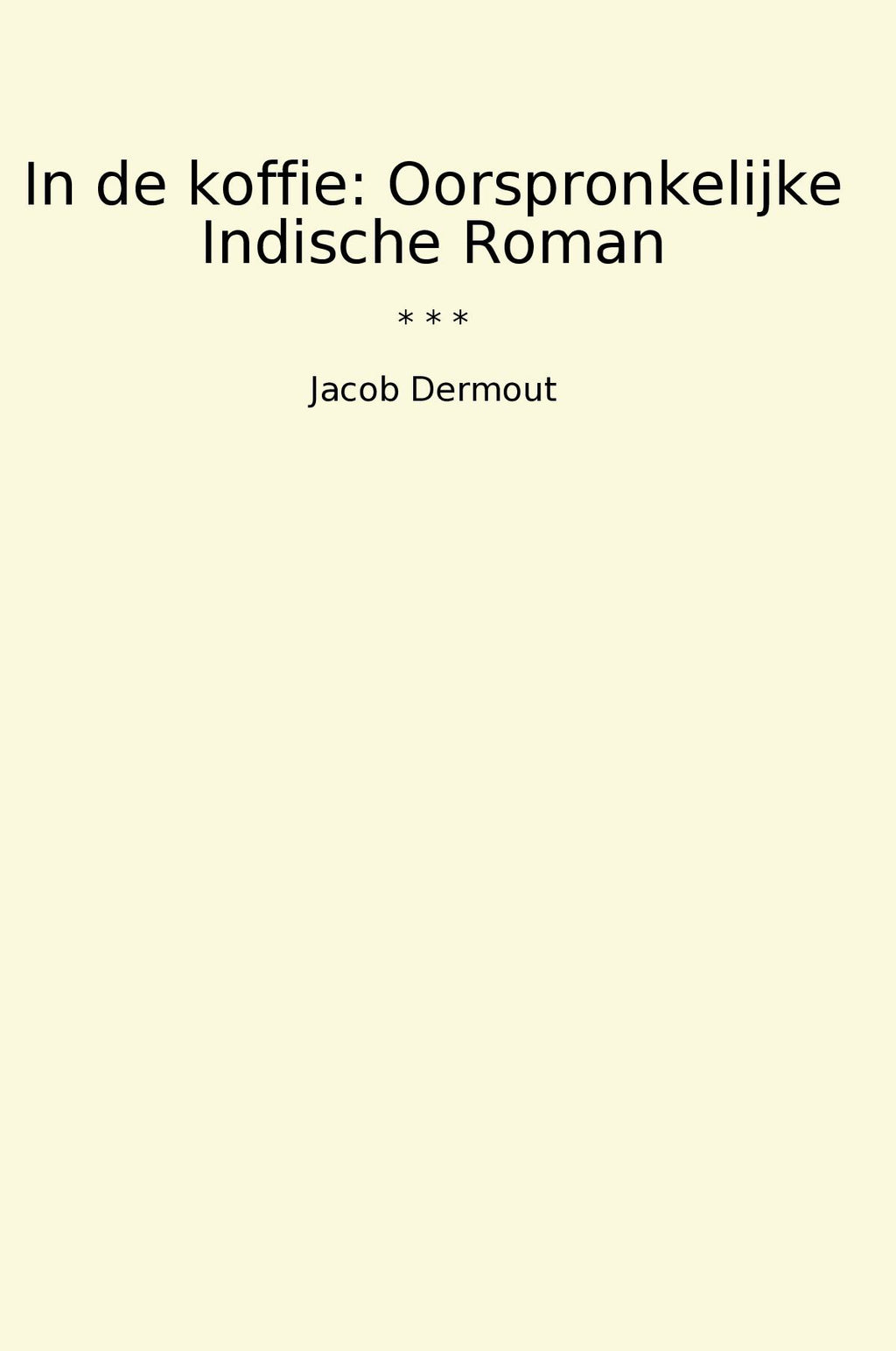 In de koffie: Oorspronkelijke Indische Roman is een klassiek boek van Jacob Dermout, een Nederlandse schrijver en auteur uit de 19e eeuw. Het boek speelt zich af in Nederlands-Indië en vertelt het verhaal van de jonge en intelligente hoofdpersoon, Erna, die opgroeit in een tijd van koloniale overheersing en sociale ongelijkheid.