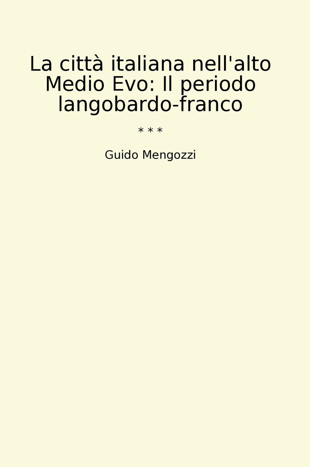 "La città italiana nell'alto Medio Evo: Il periodo langobardo-franco" di Guido Mengozzi è un testo fondamentale per comprendere l'evoluzione delle città italiane durante il periodo langobardo e franco. Attraverso una dettagliata analisi storica, l'autore esplora le trasformazioni urbane, sociali ed economiche che hanno caratterizzato questo periodo cruciale della storia italiana. Mengozzi ci guida attraverso le strade delle città italiane, svelandoci le dinamiche che hanno plasmato il volto urbano del tempo e influenzato lo sviluppo culturale della penisola. Grazie a una ricerca accurata e a una scrittura coinvolgente, l'autore ci offre uno sguardo approfondito su un momento cruciale della storia delle città italiane, gettando luce su un periodo complesso e affascinante. Un libro imprescindibile per gli appassionati di storia medievale e per chi desidera approfondire la conoscenza delle radici delle nostre città.