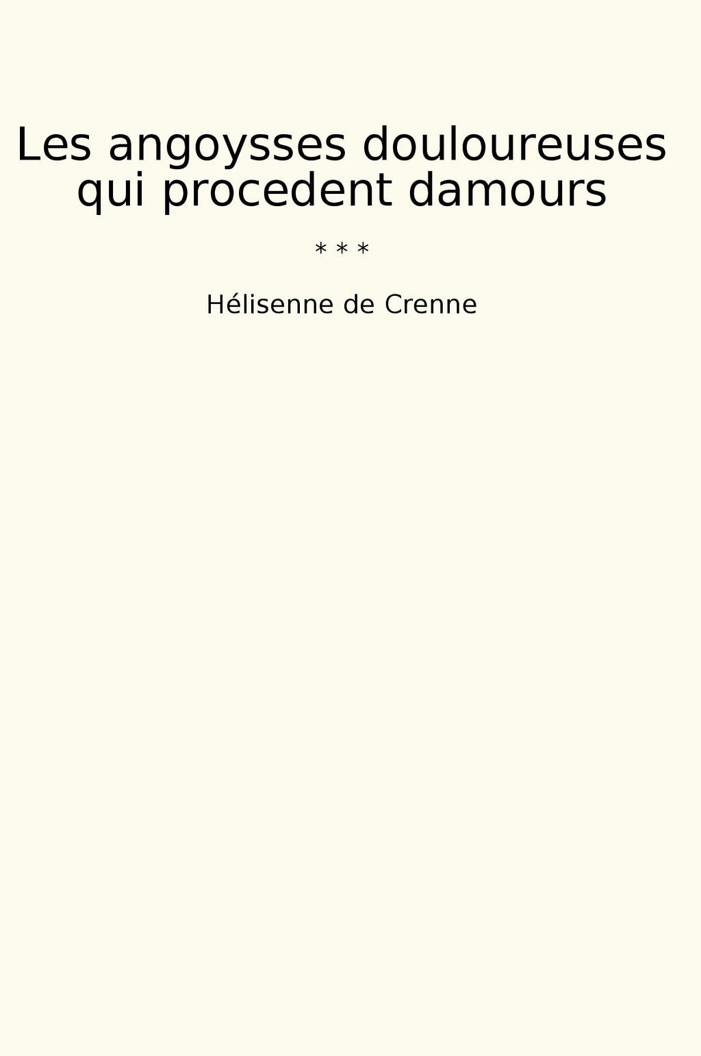 "Les angoysses douloureuses qui procedent damours" est un livre classique de l'auteure et écrivaine Hélisenne de Crenne. Publié pour la première fois en 1538, ce roman est considéré comme l'un des premiers exemples de littérature féministe. L'histoire se déroule en France au 16e siècle et met en scène une femme nommée Marguerite. Le livre raconte ses expériences amoureuses et les difficultés qu'elle rencontre dans sa quête du véritable bonheur.